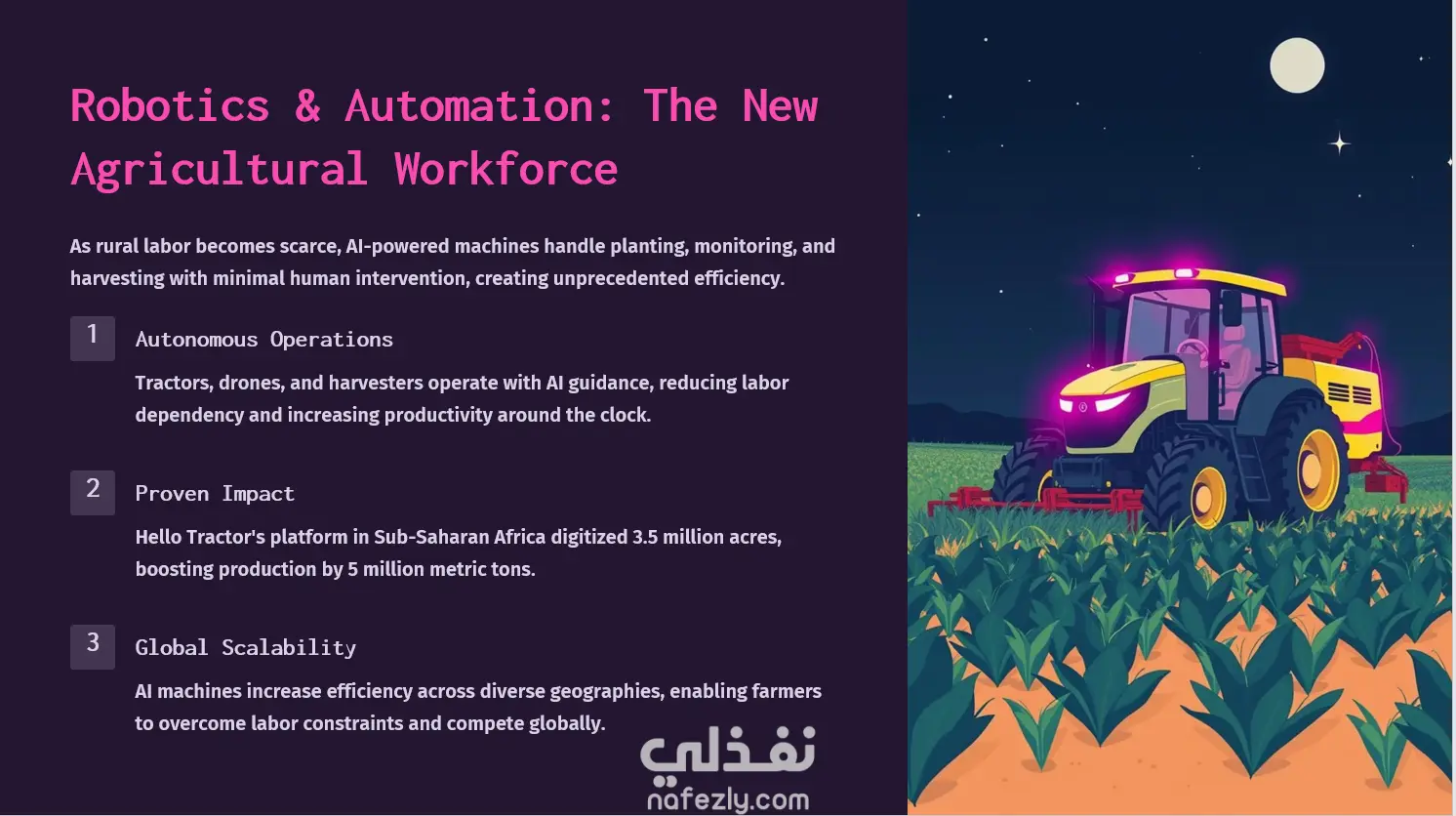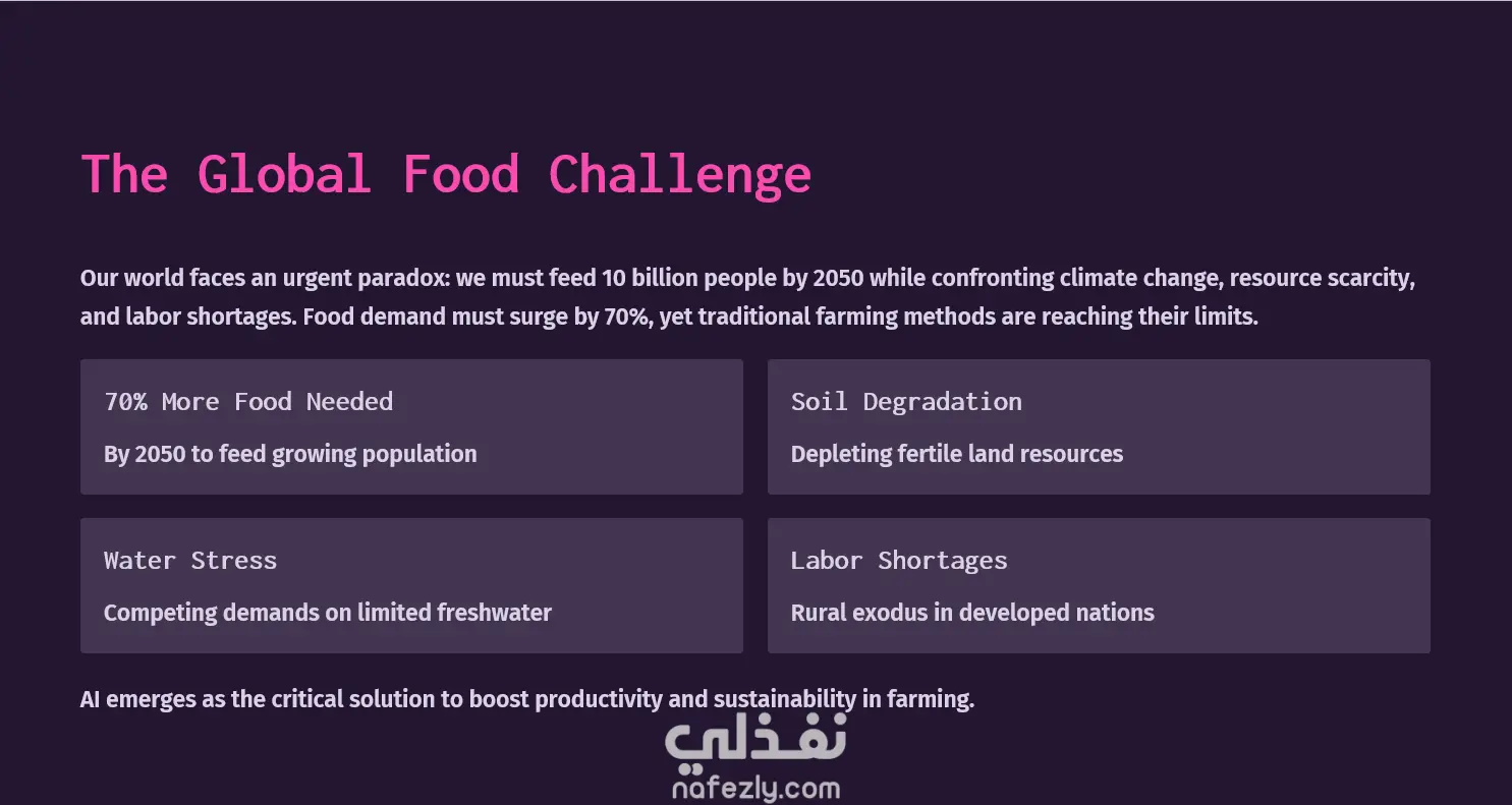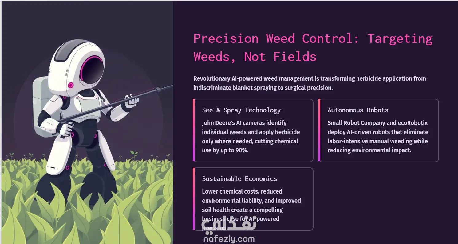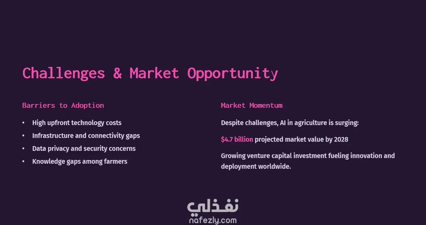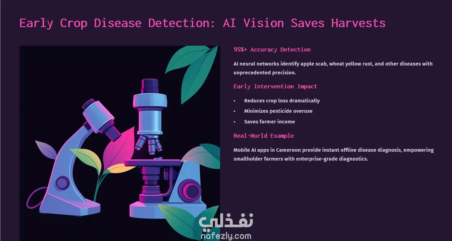 عرض تقديمي عن استخدامات الذكاء الاصطناعي فالزراعة وكيفية تطويرها