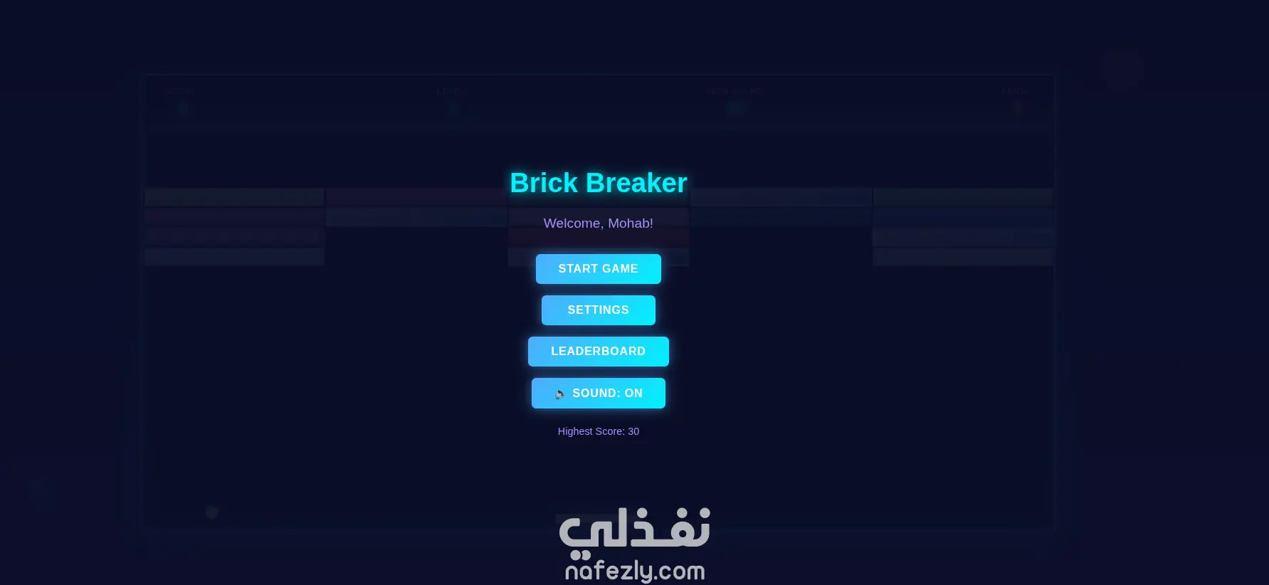 ملخص مشروع: لعبة Breakout (نسخة ES6 Modules) قمت بتطوير لعبة Breakout باستخدام JavaScript (ES6)، وهي لعبة تفاعلية تعتمد على عنصر الـ Canvas في HTML5. تُحاكي اللعبة الإصدار الكلاسيكي المعروف حيث يتحكم اللاعب في لوحة (Paddle) تتحرك أفقياً لارتداد الكرة وتحطيم الطوب (Bricks)، مع نظام نقاط وأرواح ومراحل فوز وخسارة. الجوانب التقنية: اللغة المستخدمة: JavaScript (مع ES6 Modules). هيكل المشروع: تم تقسيم الكود إلى ملفات منفصلة لتحقيق تطوير متوازي ومنظم: script.js: يحتوي على الحلقة الرئيسية للعبة (Game Loop) وإدارة الحالة العامة. ball.js: تعريف فئة الكرة (Ball) وسلوكها في الحركة والتصادم. paddle.js: تعريف فئة اللوح (Paddle) والتحكم فيه عبر لوحة المفاتيح. brick.js: تعريف فئة الطوب (Brick) وإدارة حالته أثناء اللعب. style.css: لتنسيق شكل اللعبة والعناصر الرسومية. مميزات اللعبة: تحكم سلس: يمكن تحريك اللوح باستخدام الأسهم لتوجيه الكرة وضرب الطوب. نظام تصادم دقيق: تم تطبيق منطق تصادم متكامل بين الكرة واللوح والجدران والطوب باستخدام دوال هندسية للتحقق من التداخل. نظام نقاط وأرواح: يحصل اللاعب على نقاط عند كسر الطوب. تُخصم حياة عند سقوط الكرة أسفل اللوح. عند انتهاء الأرواح تظهر شاشة “Game Over”. منطق فوز: عند كسر جميع الطوب تظهر رسالة "You Win!" ويتم إيقاف اللعبة. تخزين أعلى نتيجة: باستخدام localStorage لحفظ أفضل نتيجة محققة حتى بعد إعادة تشغيل اللعبة. تأثيرات بصرية: مثل توهج بسيط على الكرة واللوح، وتأثيرات عند تحطيم الطوب لإضافة إحساس بالحركة.