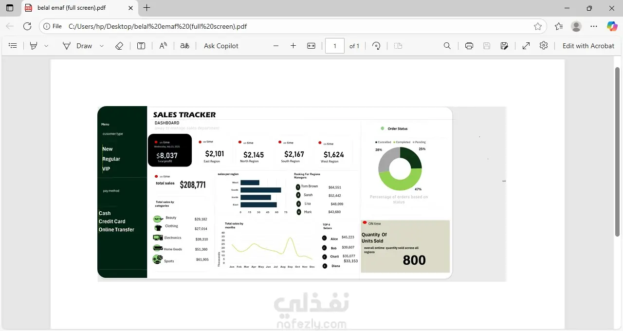 العمل باستخدام Microsoft excel لتحليل المبيعات واستخدام charts والوان مناسبة