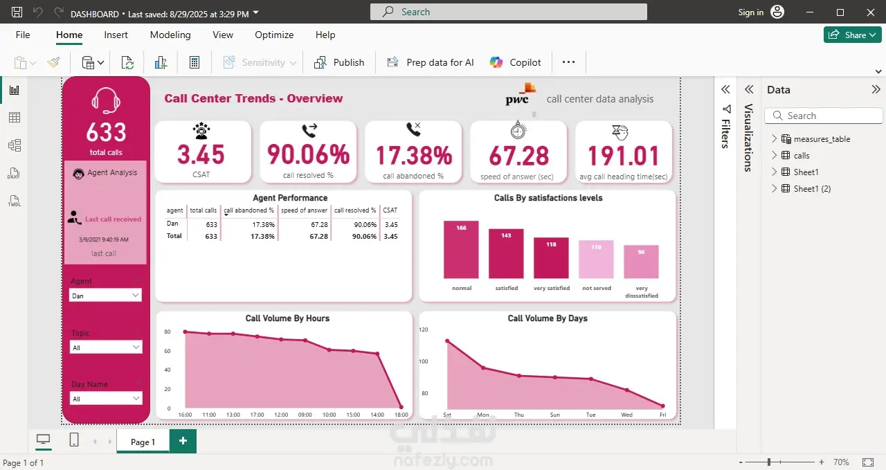 داشبورد call center تعرض اهم النقاط التى تعكس اهمية تحليلي البيانات في عملية اتخاذ القرار