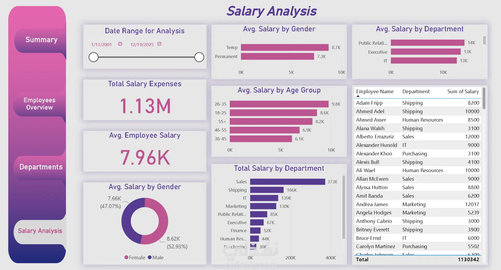 اسم المشروع: تطوير لوحة تحكم تفاعلية لتحليل بيانات خاصة بالموارد البشرية