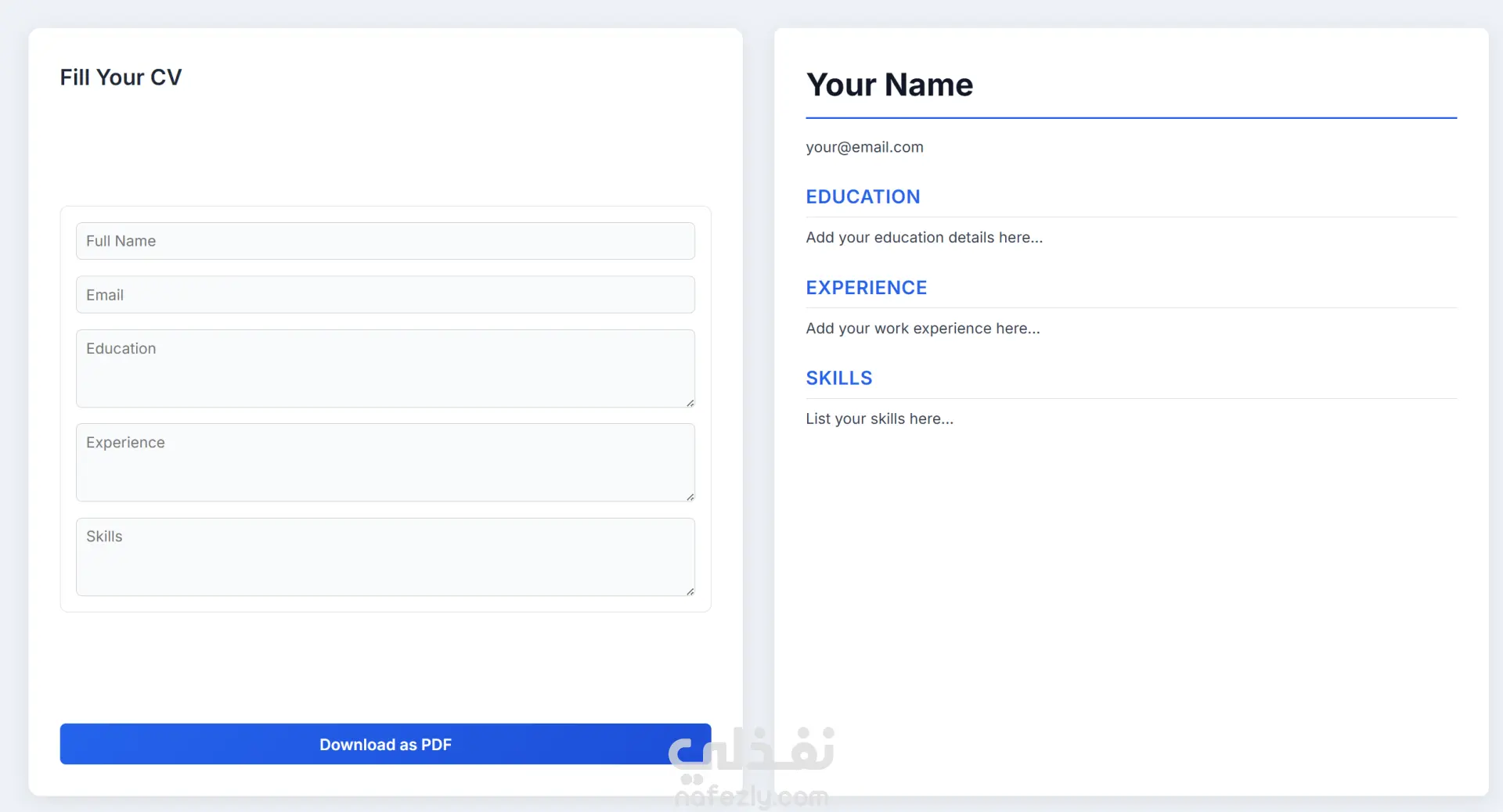 هو تطبيق ويب تفاعلي قمت بتطويره باستخدام React.js، يتيح للمستخدمين إنشاء سير ذاتية احترافية بطريقة سهلة وسريعة من خلال واجهة استخدام بسيطة وجذابة.