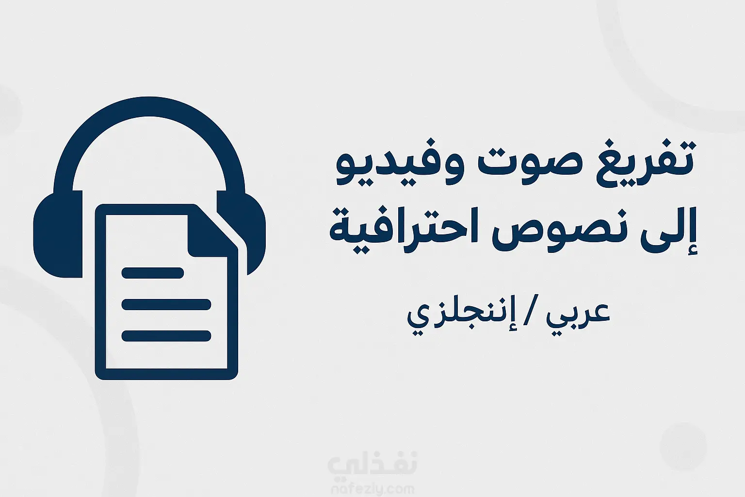 هل لديك تسجيل صوتي أو فيديو وتريد تحويله إلى نص مكتوب باحتراف؟ سأقوم بتفريغ المحتوى بدقة شديدة وبدون أخطاء لغوية، مع تنسيق النص بطريقة منظمة وسهلة القراءة. أقبل ملفات باللغة العربية أو الإنجليزية، وأضمن لك سرعة في التسليم وسرية تامة للمحتوى.