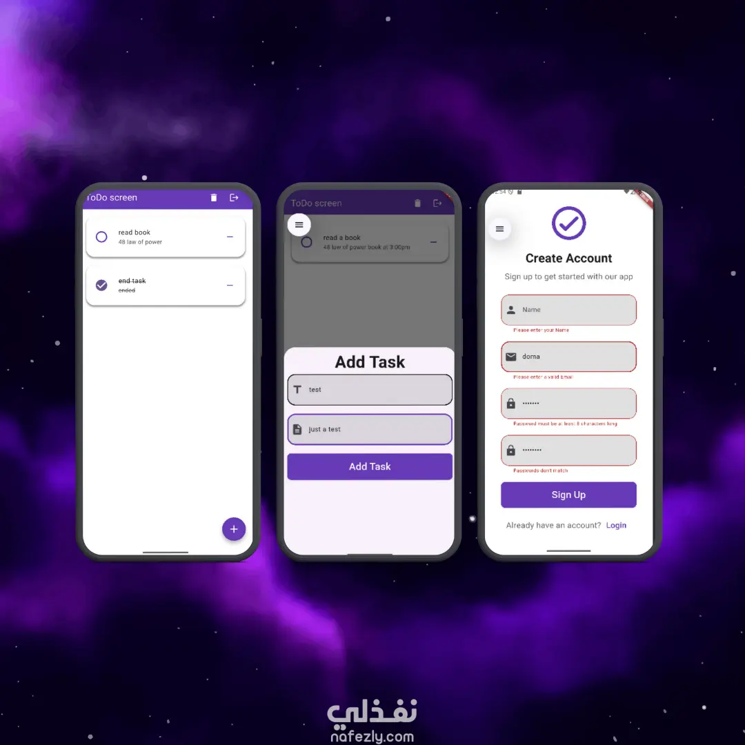 Project: Flutter To-Do & Task Management App 📱✨ Proud to showcase a secure and intuitive to-do list application I developed using Flutter for the front-end and Firebase for the back-end. 🚀 This project features a complete user authentication system, including sign-in, sign-up, password management functionalities and your tasks saved on Fire-Base-store. The app is designed with a clean, user-friendly interface to provide a seamless and efficient task management experience. 🔐My focus was on creating a robust and scalable mobile solution that is both functional and visually appealing. Key Technologies: Flutter, Dart, Firebase Authentication 💻
