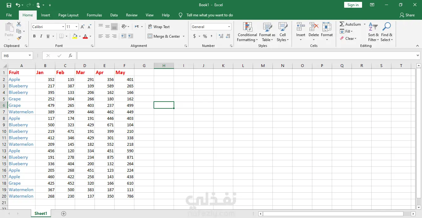 هذا جدول بعدد انواع الفاكهة فى احد المخازن و ارسل لى ورقى و غير مرتب و تم تقدمة فى ملف اكسيل