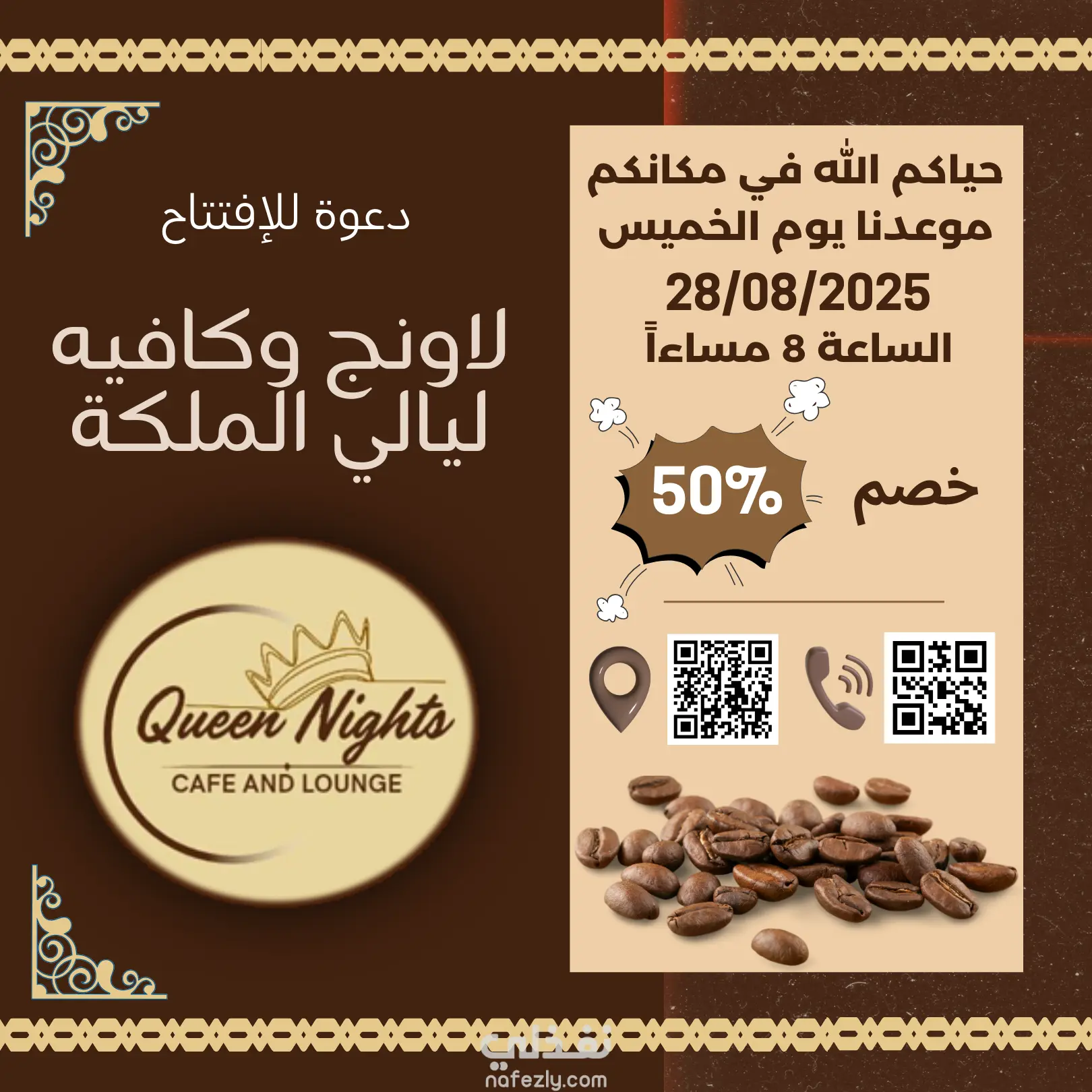 تصميم دعوة لافتتاح كوفي شوب بالسعودية