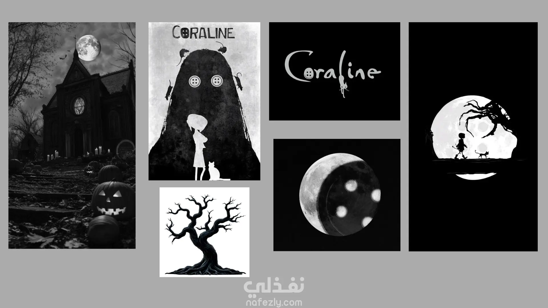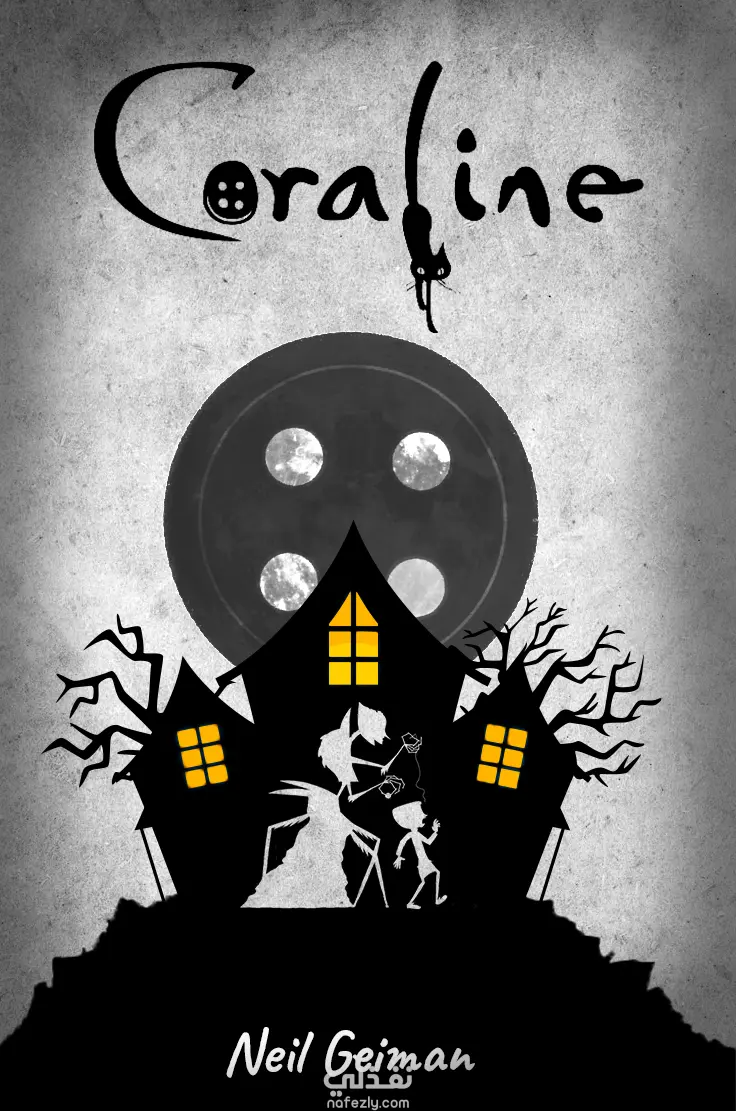 إعادة تصميم غلاف كتاب Coraline على أدوبي فوتوشوب والمود بورد التي قمت عملها لتحديد اتجاه التصميم