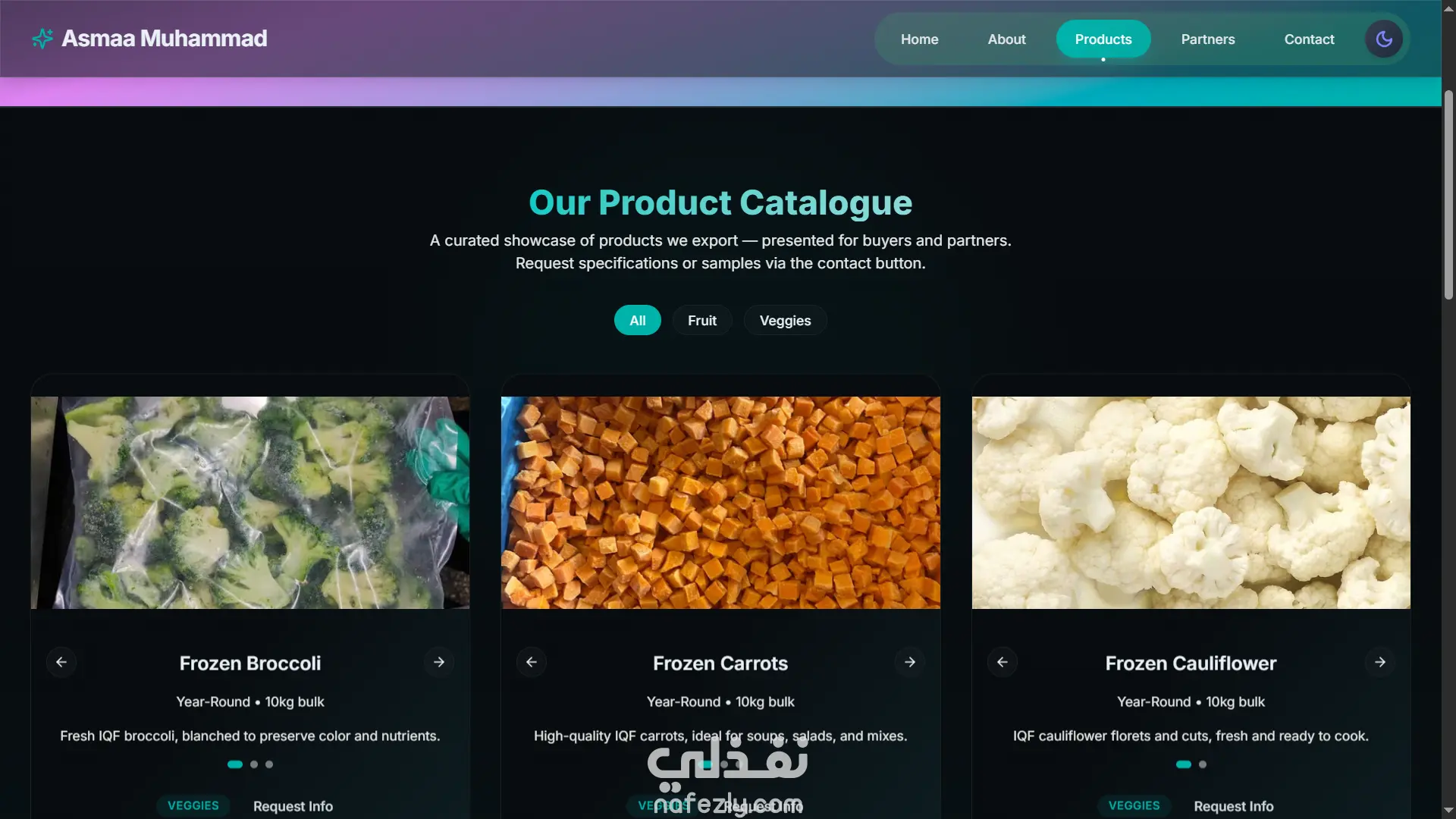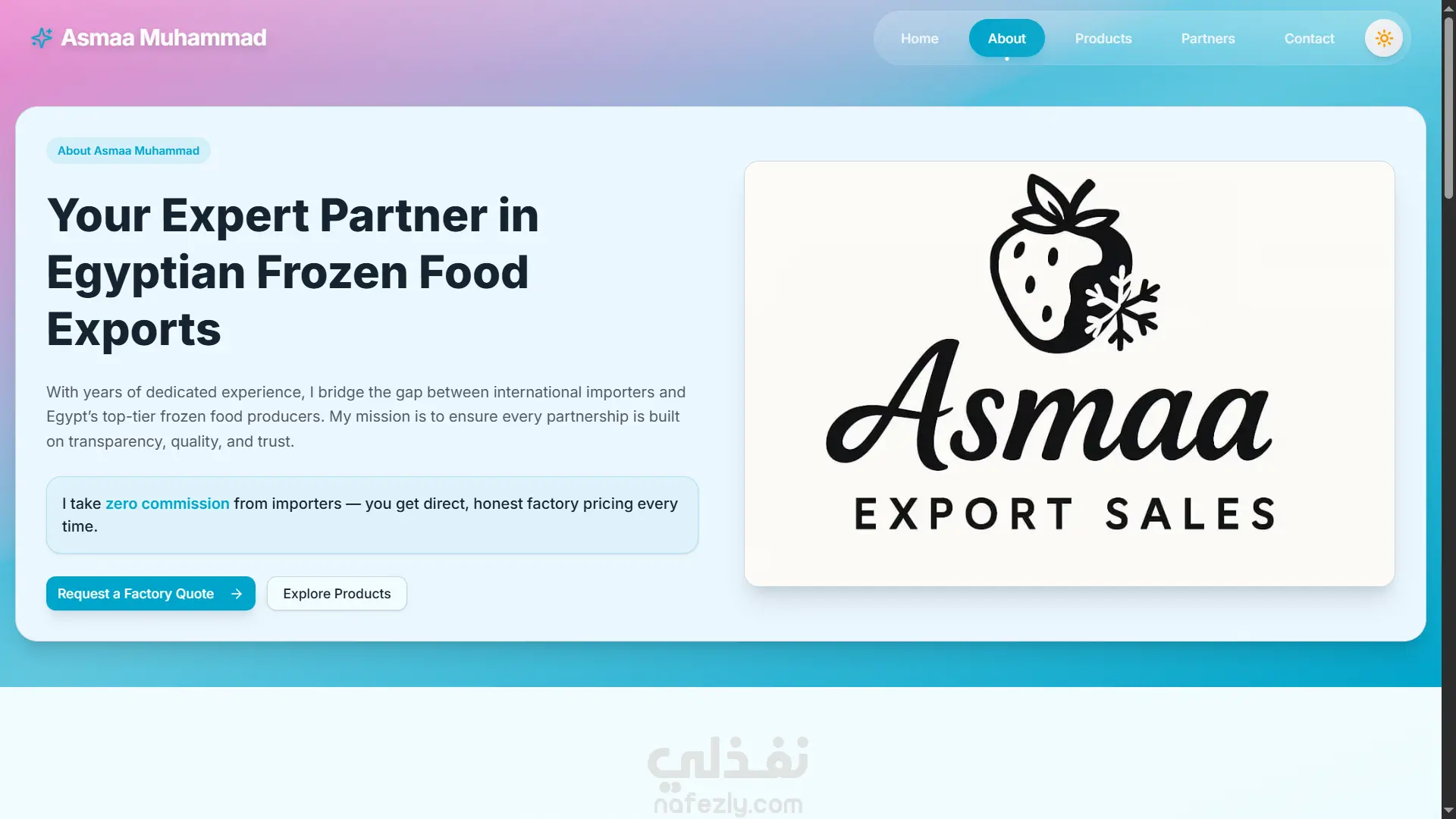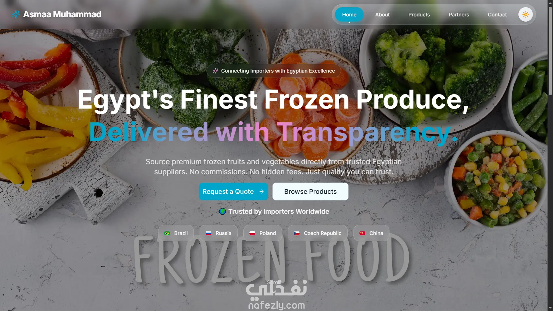تم تطوير منصة "ExportSales" كموقع ويب تفاعلي موجه للأعمال (B2B) يهدف إلى ربط المستوردين الدوليين بالمصانع المصرية الموثوقة لتصدير الفواكه والخضروات المجمدة.