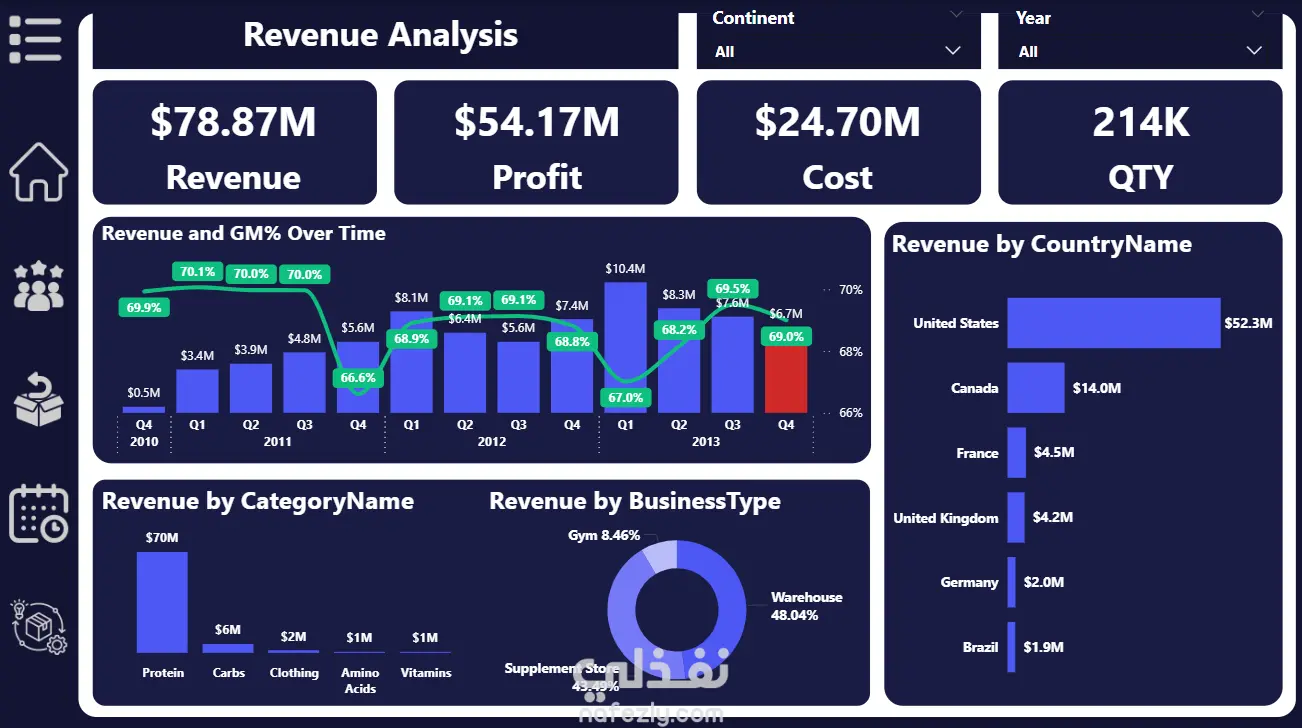 -حساب مؤشرات مثل: إجمالي الإيرادات، معدل النمو الشهري، ومتوسط الإيراد لكل عميل.