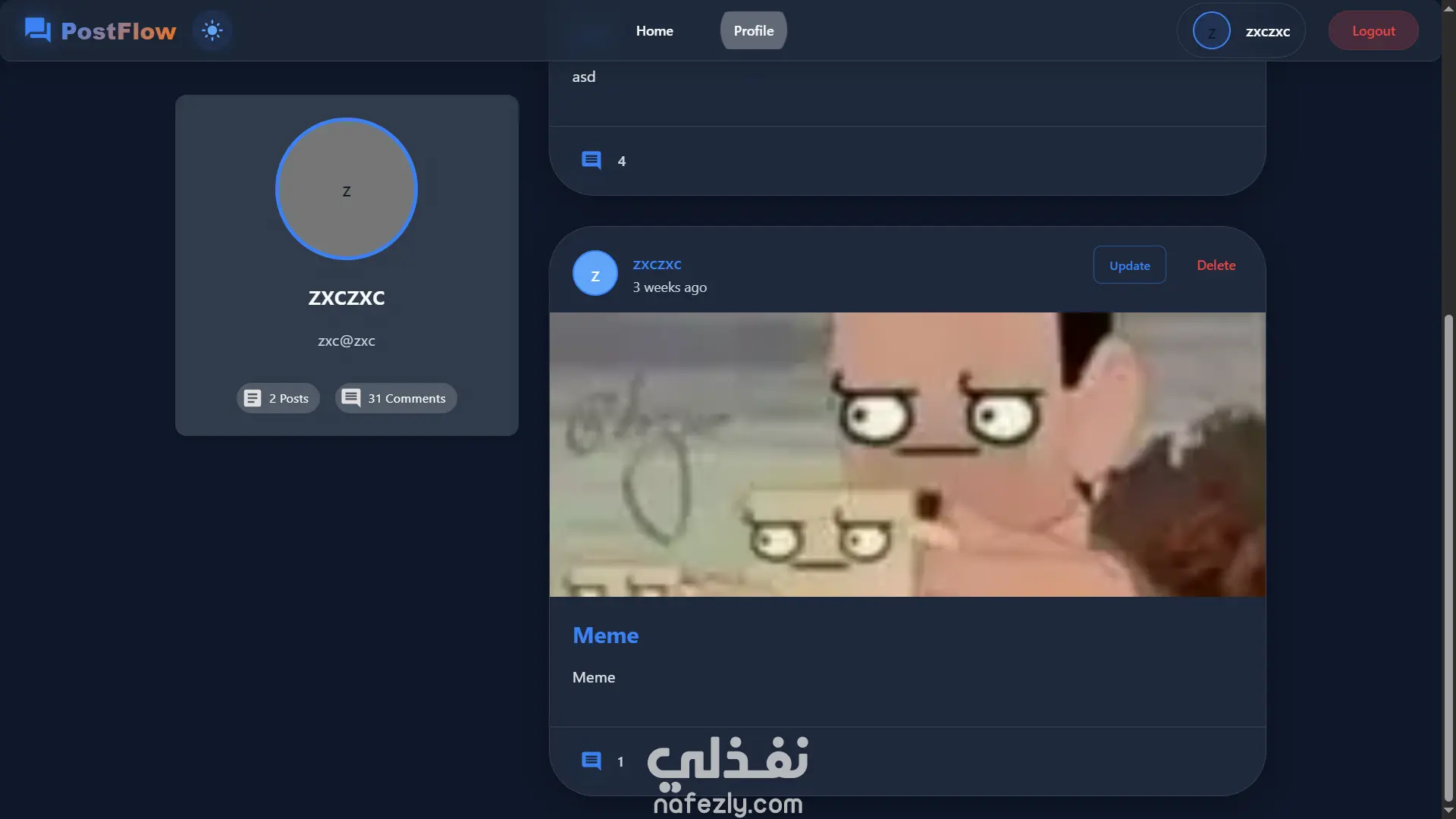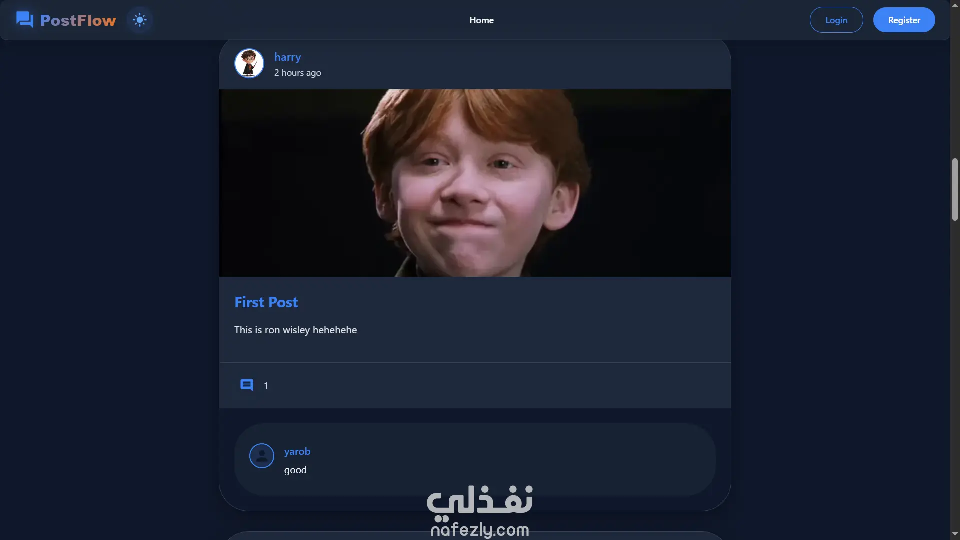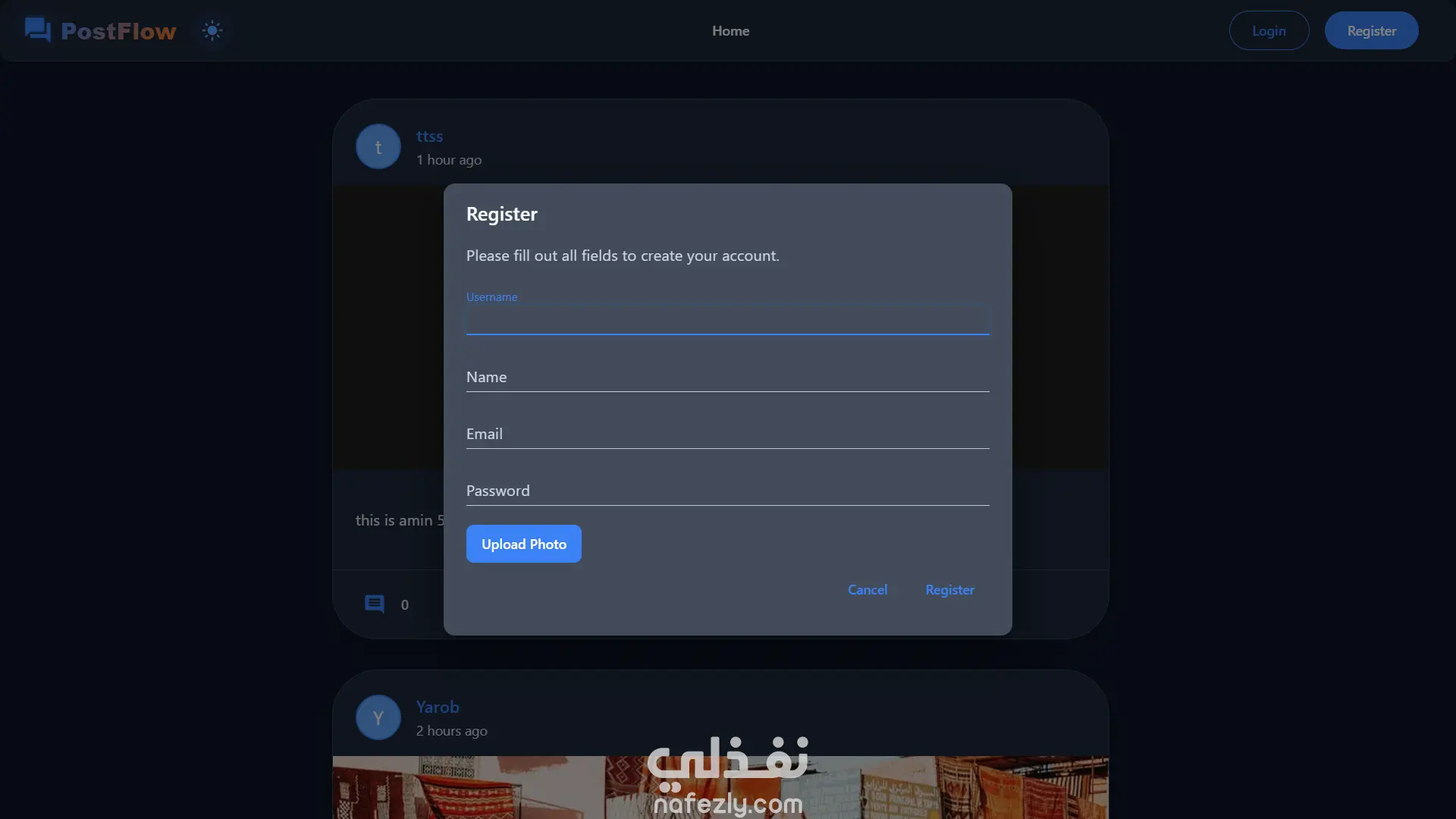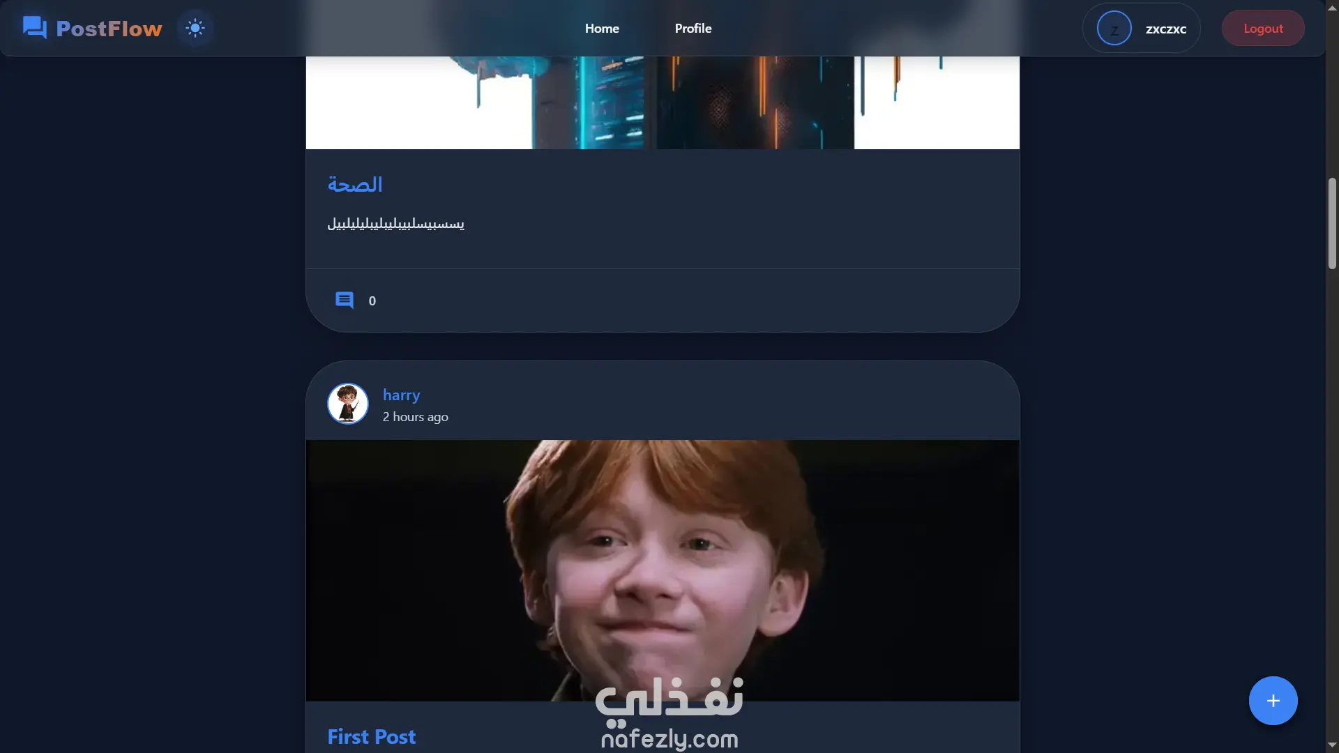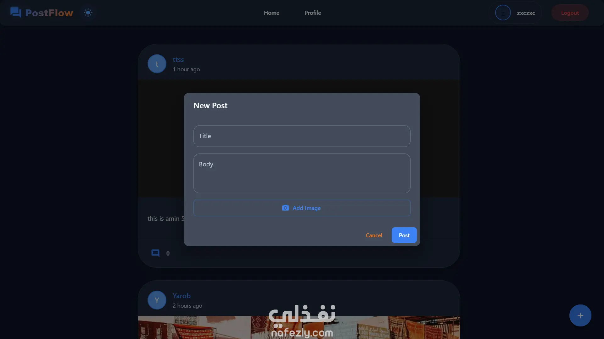 منصة "PostFlow" هي تطبيق ويب تفاعلي حديث يحاكي شبكات التواصل الاجتماعي، يتيح للمستخدمين مشاركة المنشورات والتفاعل معها لحظياً. تم بناء المشروع بالاعتماد على Next.js لضمان الأداء العالي وتجربة مستخدم سلسة.