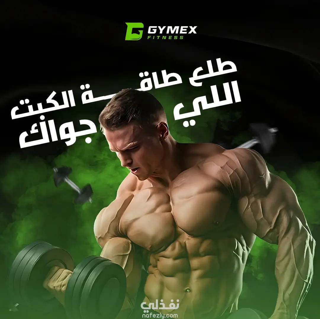 الهوية البصرية: تعتمد على شعار GYMEX وخطوط قوية واضحة.