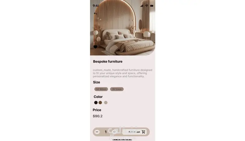 شاشة تفاصيل المنتج التي توضح المعلومات والألوان المتاحة.