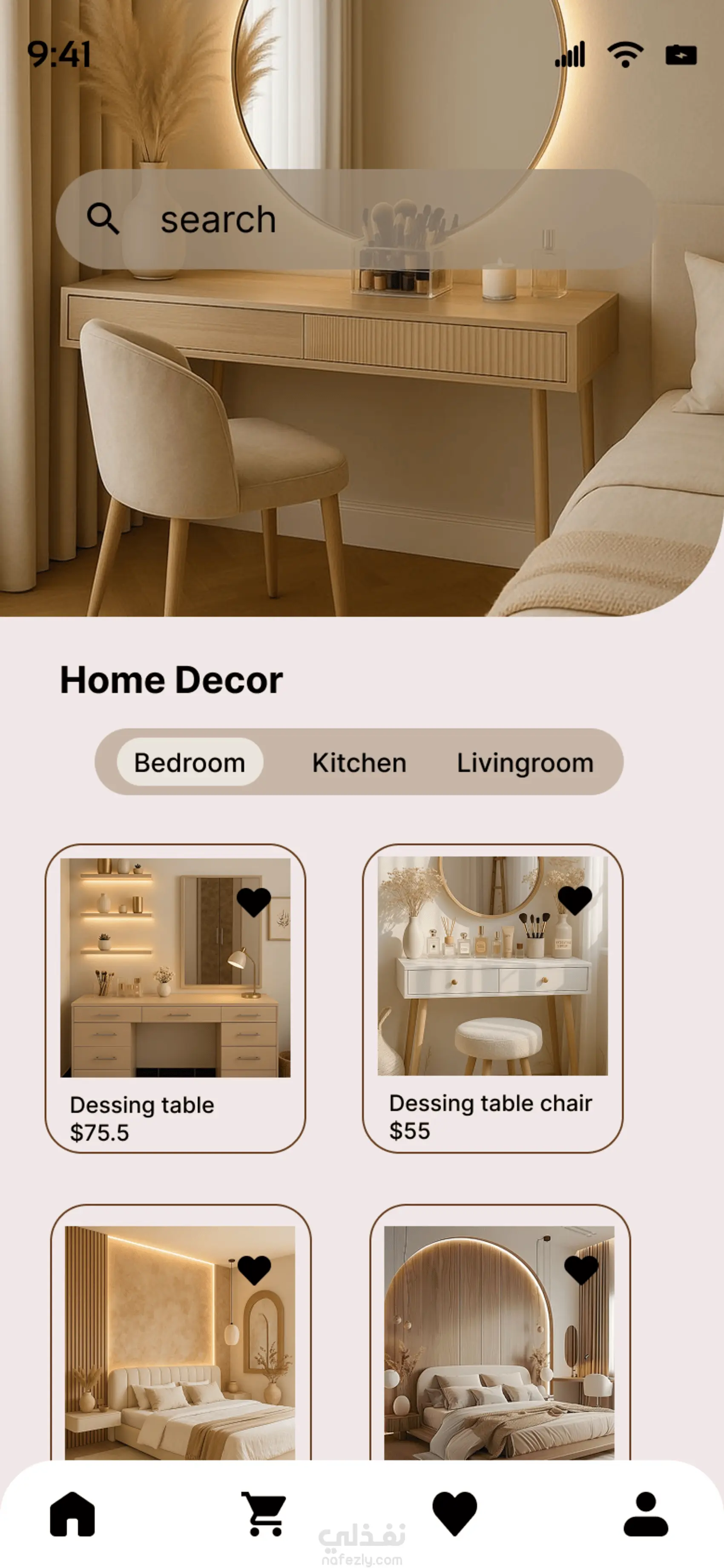 الهدف من التصميم هو تقديم تجربة بسيطة وأنيقة تتيح للمستخدم تصفح تصاميم وأفكار ديكور المنزل بسهولة وراحة.