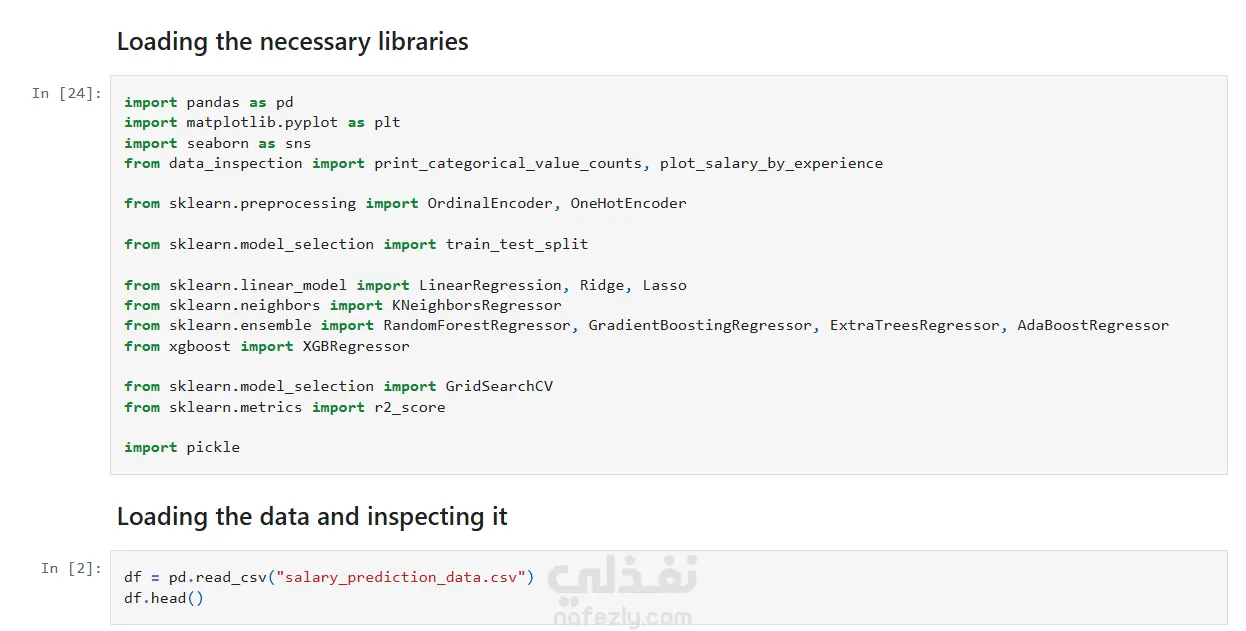 نموذج تعلّم الآلة لتوقّع الرواتب هو نموذج يُستخدم للتنبؤ بقيمة راتب شخص ما بناءً على مجموعة من الخصائص (المتغيرات) مثل الخبرة، المستوى التعليمي، العمر، المسمى الوظيفي، والموقع الجغرافي بعدما قمت بمعالجة البيانات باستخدام مكتبات مثل Pandas, numpy, matplotlib . تم تدريب النموذج باستخدام مكتبة Scikit-Learn