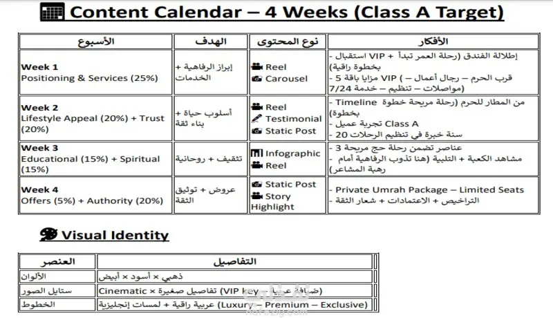 1. ملف خطة محتوى شهرية جاهزة للنشر.