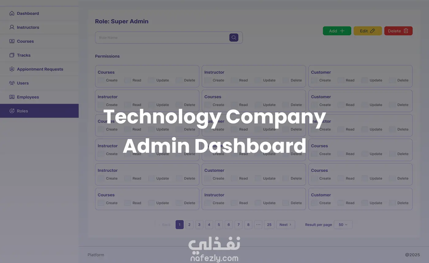 مشروع تصميم لوحة تحكم (Dashboard) مخصصة لإدارة شركة تقنية، تهدف إلى تسهيل عملية إدارة المستخدمين، الصلاحيات، والمدربين بطريقة منظمة وسهلة الاستخدام.