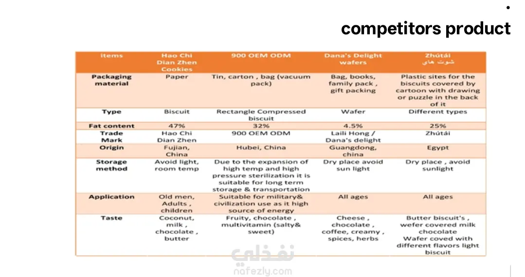 عمل تحليل للمنافسين لشركه مواد غذائيه مشهوره