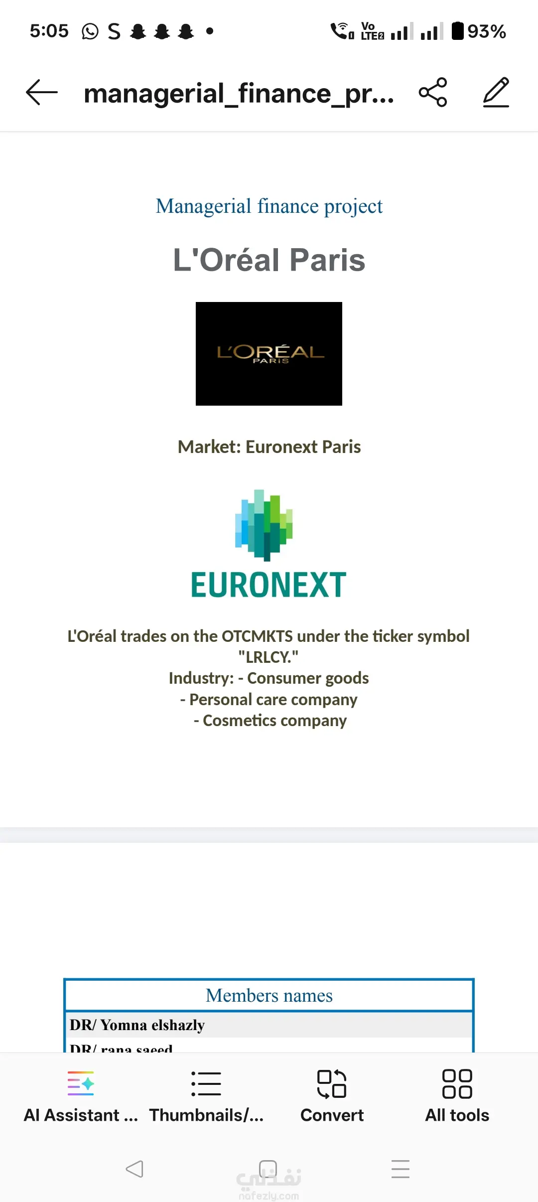 عمل تحليل مالي لشركه لوريال