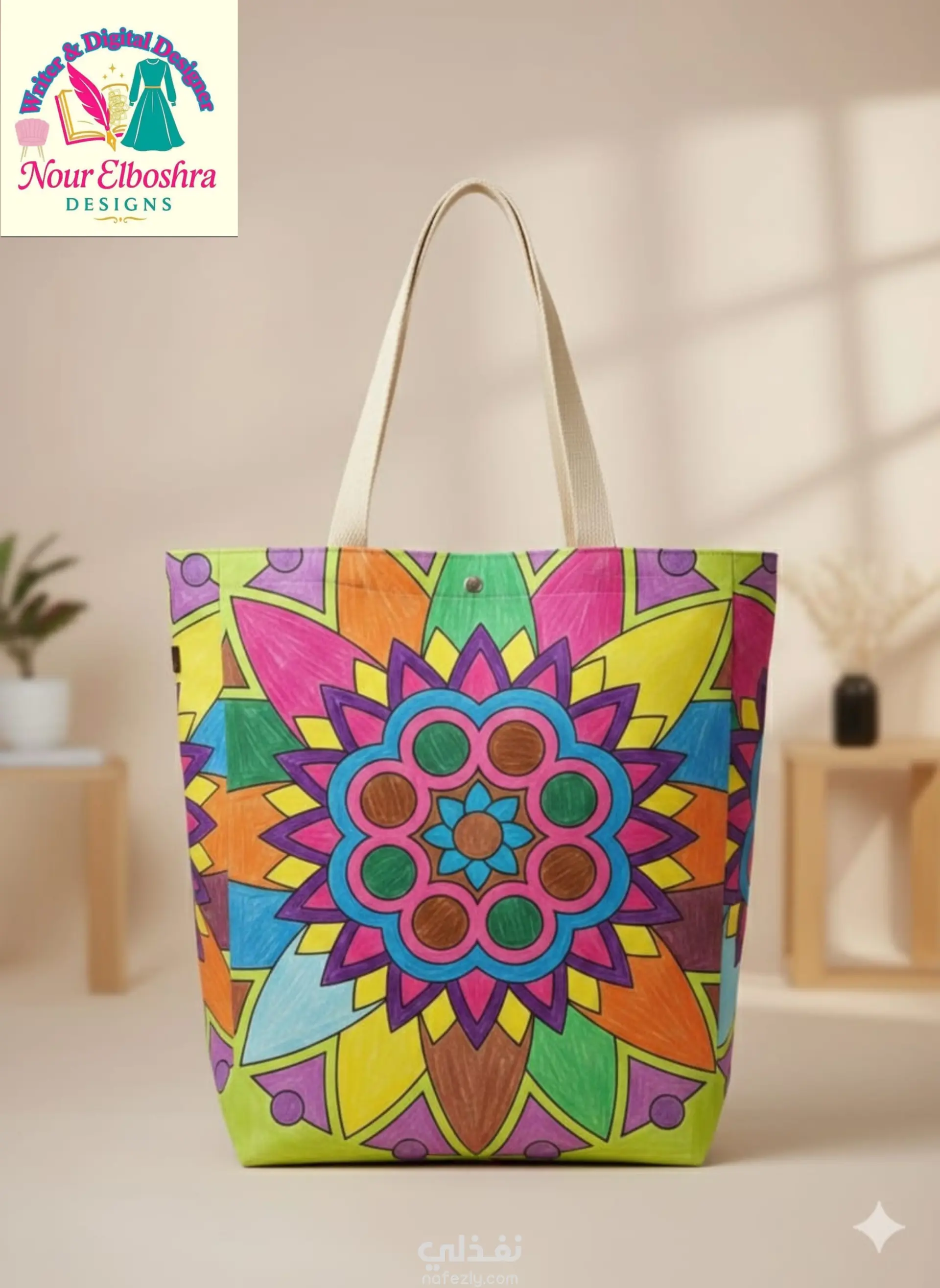 🎨 From Hand-Colored Art to Digital Fashion Magic! اكتشفي روعة Nour Elboshra Mandala Collection – "Colour Your Days" Design ✨ رحلة تبدأ من لوحة ماندالا ملونة باليد، لتتحول إلى تصميم رقمي أنيق يمكنكِ استخدامه كما تشائين: 🌀 كباترن رقمي فريد لتصميماتك 👕 أو للطباعة على التيشيرتات والأزياء 🕰️ أو لابتكار منتجات ديكور مثل الوسائد، الستائر، الشنط، والسكارفات ✨ التصميم متاح الآن بجودة عالية (6250px PNG بخلفية شفافة) جاهز للطباعة والاستخدام التجاري والإبداعي. 🛍️ احصلي على نسختك الرقمية من Nour Elboshra Designs ودعي الألوان تحكي قصتك وتمنح يومك طاقته الإيجابية! 🌈