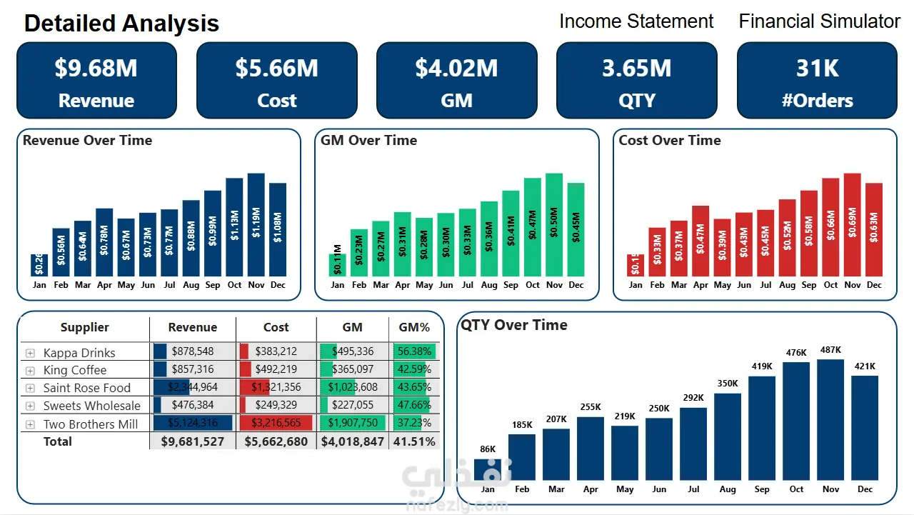4-التقارير التفاعلية: رسوم بيانية وجداول تساعد على تتبع الأداء المالي بمرور الوقت.