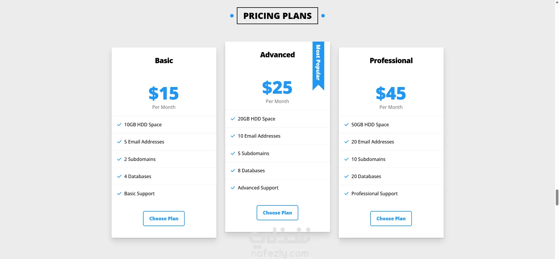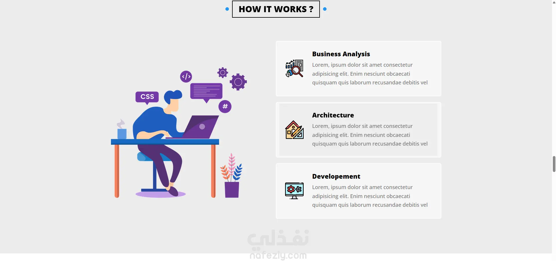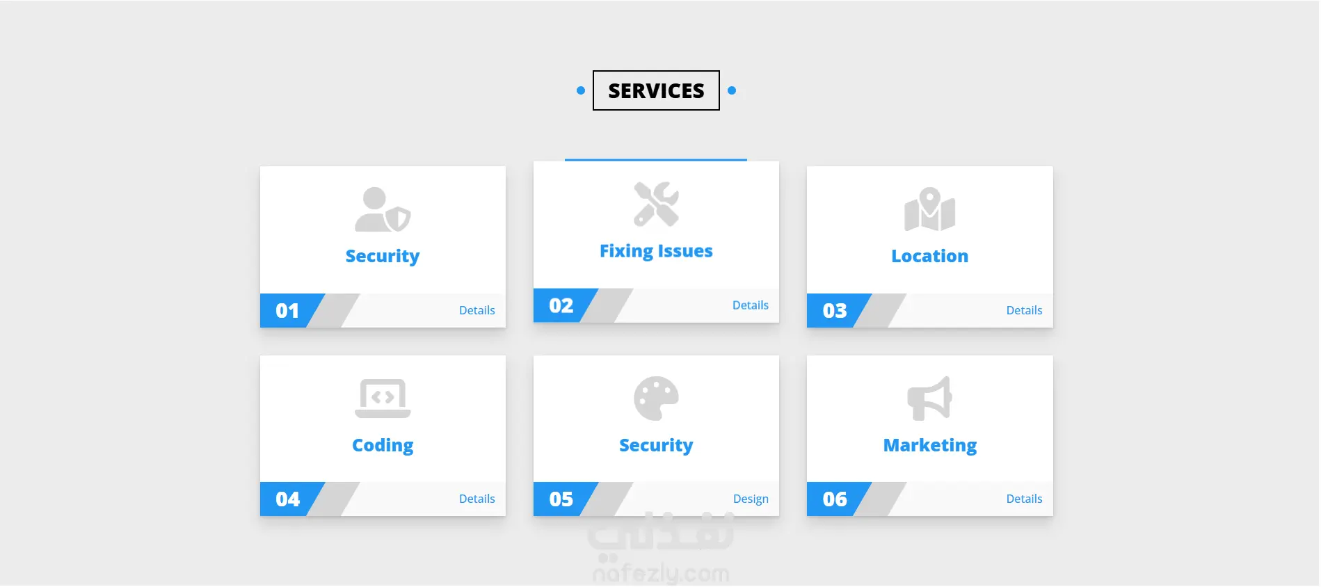 الخدمات (Services): تقديم الخدمات بشكل مبسط مع أيقونات معبرة.