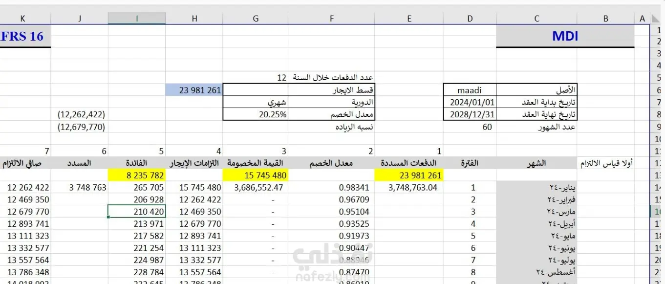 تطبيقي لمعيار IFRS 16 (عقود الإيجار)