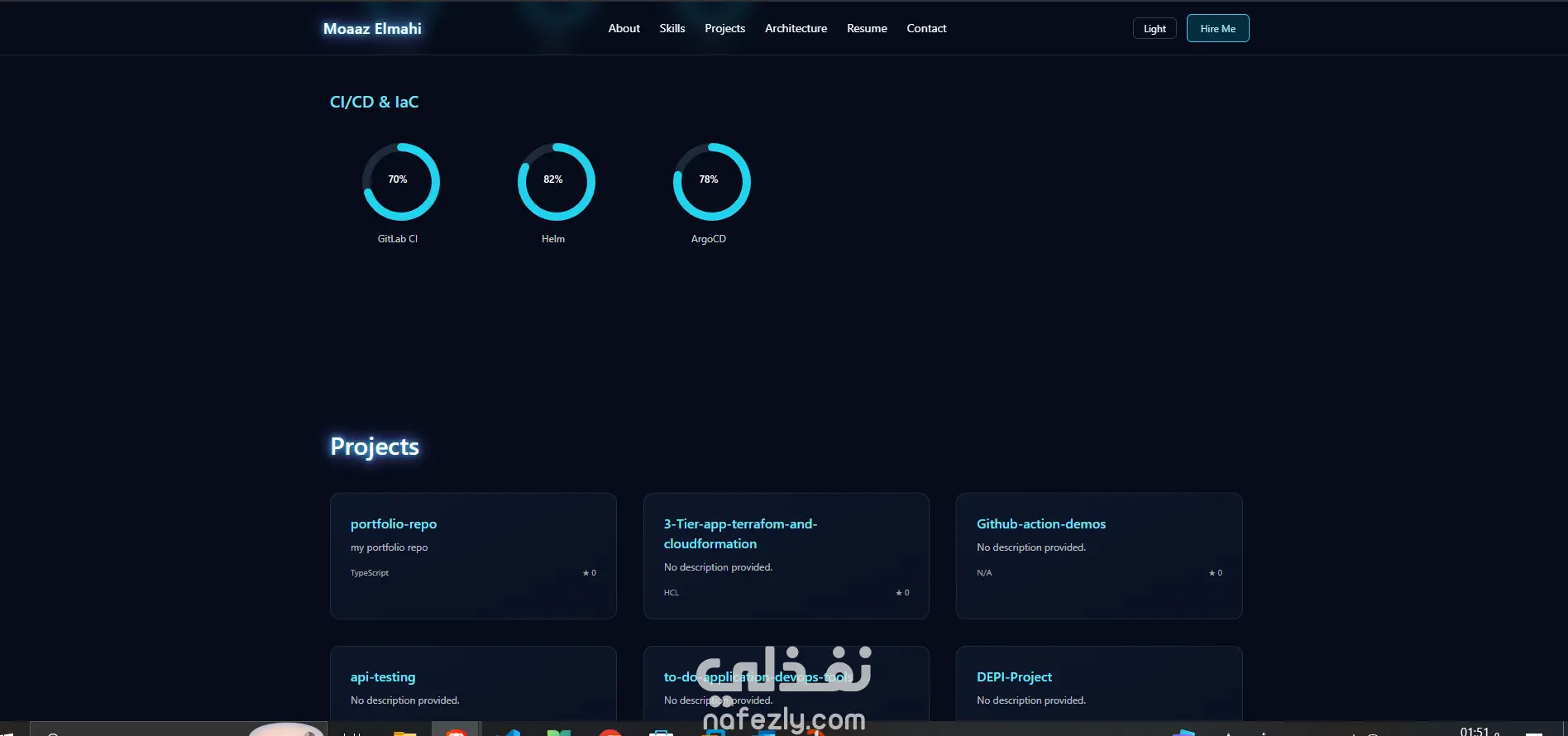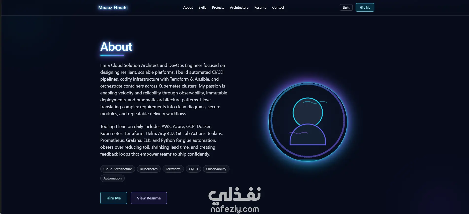تصميم برتوفوليو شخصي احترافي وسريع الاستجابة يعرض المهارات والأعمال السابقة بشكل جذاب ومنظم.
