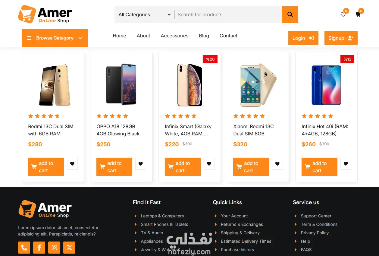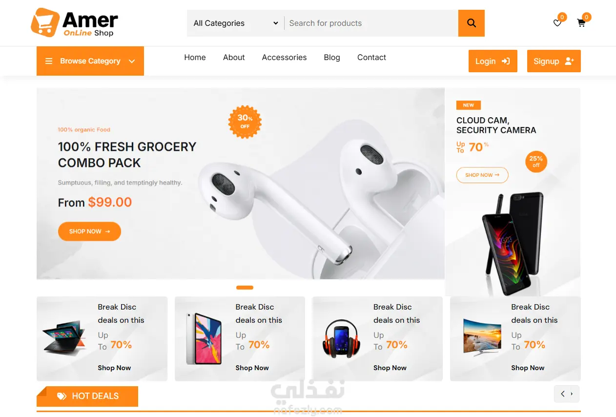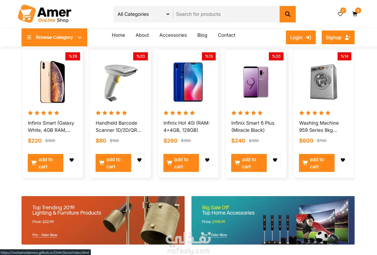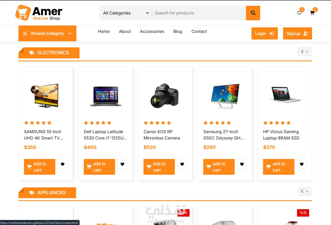 "تصميم وتطوير موقع تجارة إلكترونية متجاوب وحديث لمنتجات (منزلية، هواتف، وإلكترونيات)، مع دمج أحدث العروض وخيارات الدفع. تم التركيز على استخدام التقنيات الرائدة لضمان تجربة مستخدم محسّنة، تتضمن الرسوم المتحركة، سرعة التحميل الفائقة، والتوافق الأمثل مع الأجهزة المحمولة."