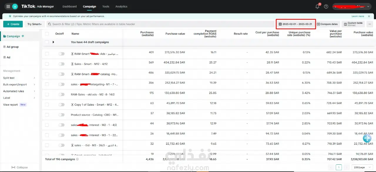 توسيع نطاق الحملات الإعلانية وزيادة الإنفاق اليومي بما يتوافق مع المؤشرات الرئيسية للأداء (KPIs) لتحقيق النتائج المرجوة.