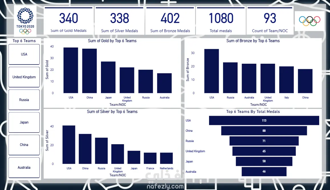 لوحة معلومات (Dashboard) لنتائج أولمبياد طوكيو 2020