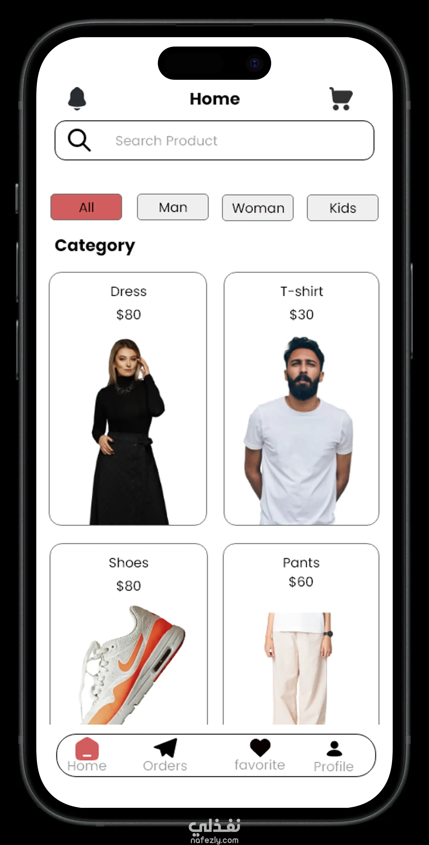 قمت بتصميم واجهة تطبيق تسوق متكامل للملابس الرجالي والحريمي والأحذية، ضمن مبادرة رواد مصر الرقمية,