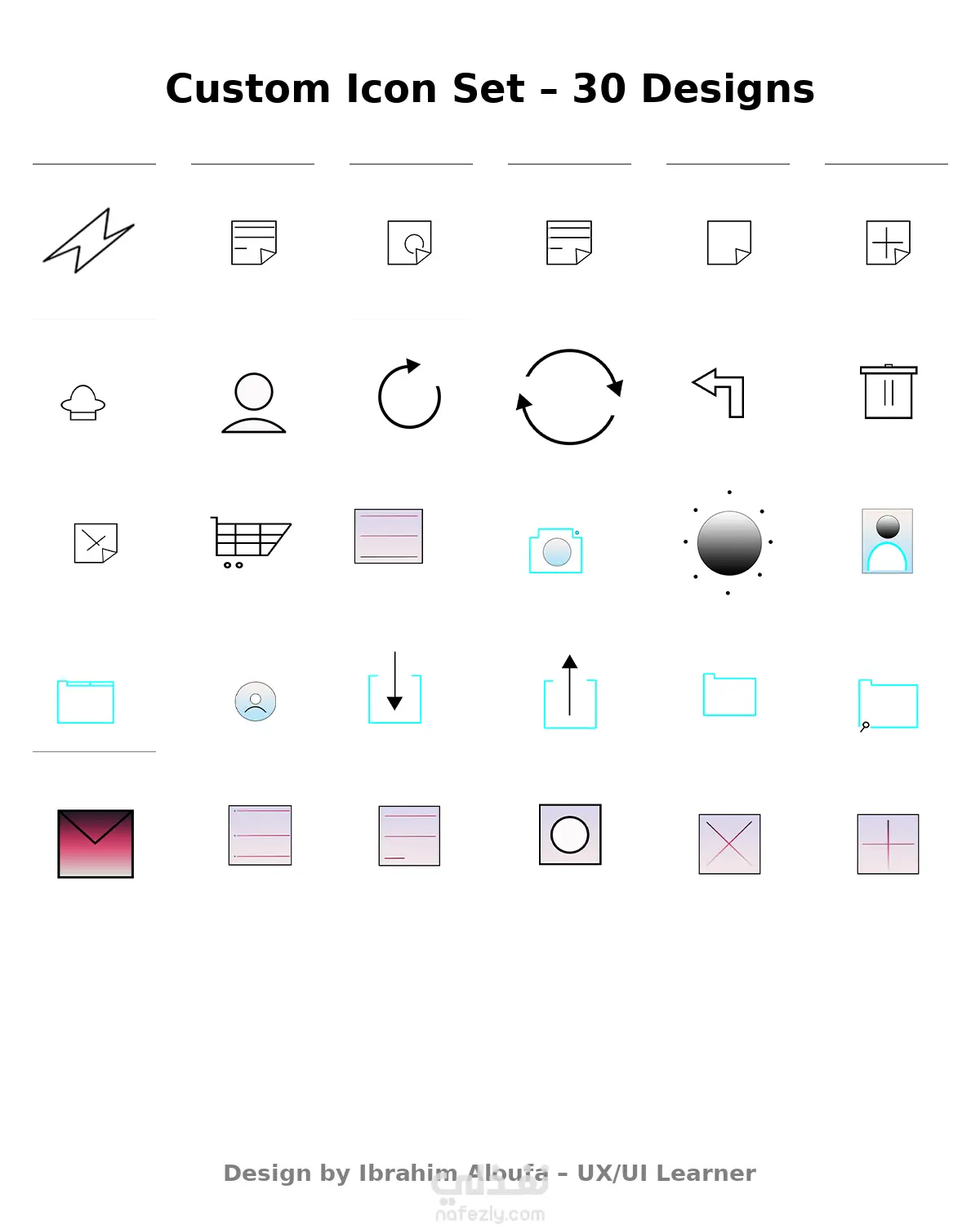 نفذت مشروع تصميم مكوّن من 30 أيقونة مخصصة باستخدام Adobe Photoshop و4 شعارات (Logos) و 8 لوجو باستخدام Adobe Illustrator، ضمن التدريب في مبادرة رواد مصر الرقمية. تم التركيز على التناسق البصري بين الأيقونات وتطبيق مبادئ البساطة في تصميم الشعارات. الميزات: تصميم أيقونات بأسلوب متسق ومناسب لواجهات التطبيقات والمواقع إنشاء شعارات تعبر عن هوية بصرية واضحة وبسيطة استخدام مبادئ التصميم المسطح (Flat Design) لتناسب الاستخدامات الرقمية الأدوات: Adobe Photoshop – Adobe Illustrator