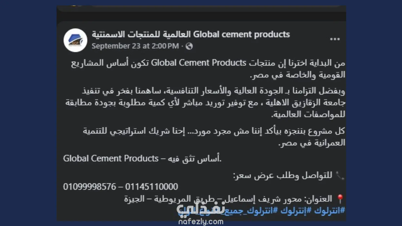 قمت بكتابه منشورات مميزة وجذابة لوسائل التواصل الاجتماعي (فيسبوك، إنستغرام، تويتر، لينكدإن...) بطريقة احترافية تتناسب مع هوية شركه العالميه للمنتجات الاسمنتيه حرصت على أن تكون المنشورات مكتوبة بأسلوب إبداعي، مع مراعاة طبيعة الجمهور المستهدف، وتضمين عناصر تشويقية تشجع على التفاعل والمشاركة.