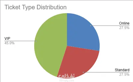 نظام تتبّع لإدارة الحضور، أنواع التذاكر، والمدفوعات الخاصة بالفعاليات. أهم النقاط: • قوائم منسدلة لأنواع التذاكر وحالة الدفع. • تنسيق شرطي لتمييز العملاء الـVIP والمدفوعات المعلقة. • جدول ملخّص + مخطط دائري لعرض توزيع التذاكر.