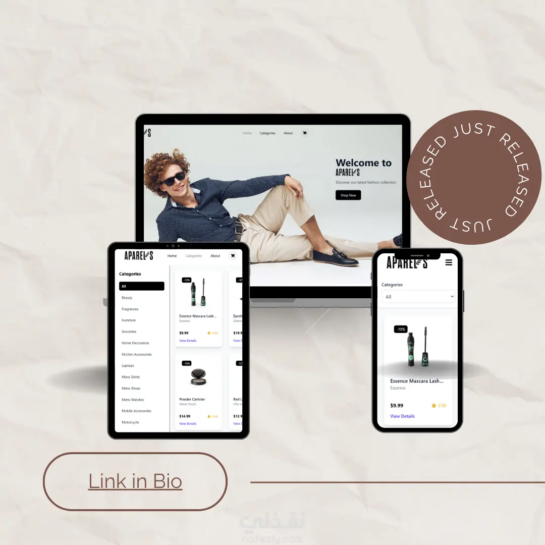 متجر إلكتروني (E-commerce App) عملت على تطوير تطبيق ويب للتجارة الإلكترونية متكامل باستخدام React.js و Tailwind CSS، مع التركيز على التصميم العصري وسهولة الاستخدام عبر مختلف الأجهزة (Responsive Design). مميزات المشروع: الصفحة الرئيسية (Home Page): عرض المنتجات المميزة والتصنيفات في واجهة جذابة وسريعة. صفحة التعريف (About): تقديم نبذة مختصرة عن المتجر ورسالته. التصنيفات (Categories): تصفح جميع الأقسام واستعراض المنتجات الخاصة بكل قسم. حساب المستخدم (Account): تسجيل حساب جديد، تسجيل الدخول وإدارة بيانات المستخدم. سلة التسوق (Shopping Cart): إضافة المنتجات إلى السلة، تعديل الكمية أو الحذف بسهولة. تجربة تسوق متكاملة: تصفح، اختيار منتجات، إضافة للسلة، ثم إتمام الشراء. التقنيات المستخدمة: React.js: لبناء واجهة المستخدم بشكل تفاعلي وسريع. Tailwind CSS: لتنسيق واجهة عصرية مع قابلية تخصيص عالية. JavaScript (ES6+): لإضافة التفاعلية ومعالجة البيانات. هذا المشروع يعكس خبرتي في بناء تطبيقات ويب عملية واحترافية، مع مراعاة تجربة المستخدم، وسرعة الأداء، وتنظيم الكود ليكون قابل للتطوير مستقبلاً.