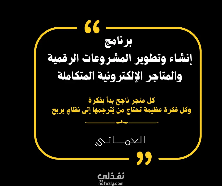 هذا البرنامج يصمم لك الطريق من “مجرد فكرة” إلى “كيان رقمي” جاهز للإطلاق والنمو — مشروع يبيع حتى أثناء نومك.