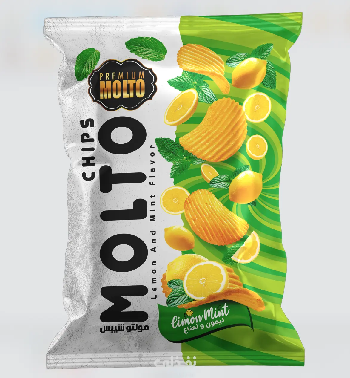 تصميم نكهة الليمون و النعناع من شيبس شرائح البطاطا مولتو