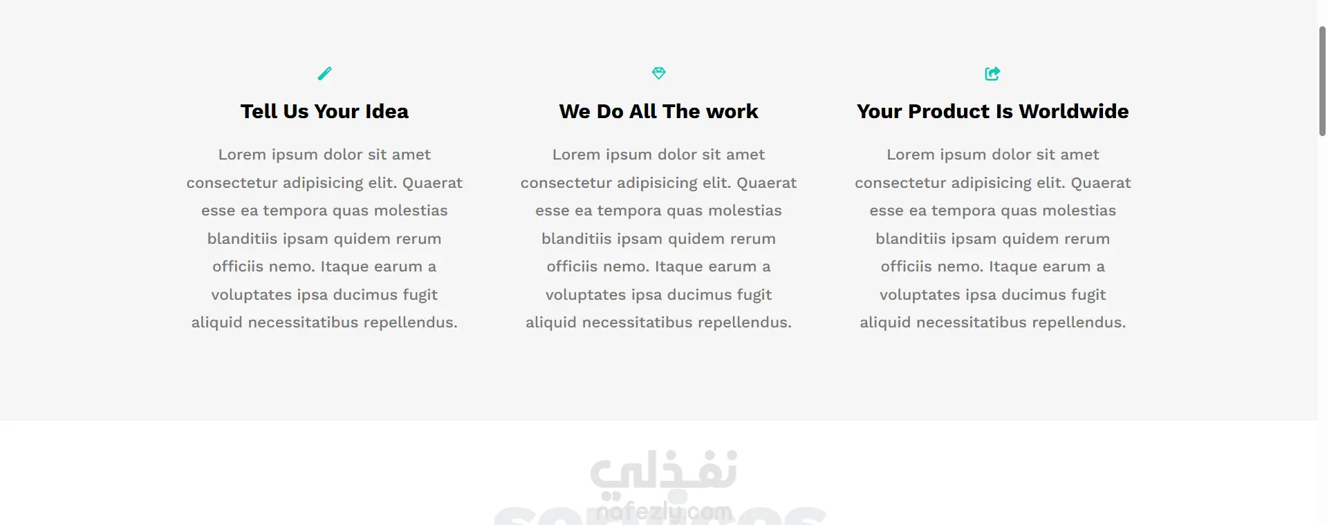 المميزات (Features): 3 صناديق أيقونات توضح نقاط القوة أو خدمات الشركة.