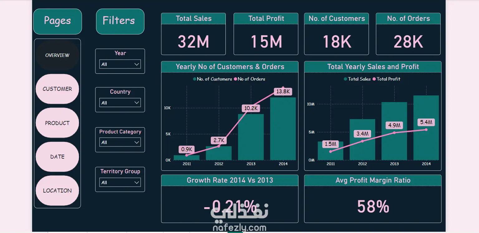 بعد ذلك استخدمت Power BI لتصميم لوحة تحكم تفاعلية تعرض أهم المؤشرات والأداء العام بطريقة بصرية سهلة الفهم.