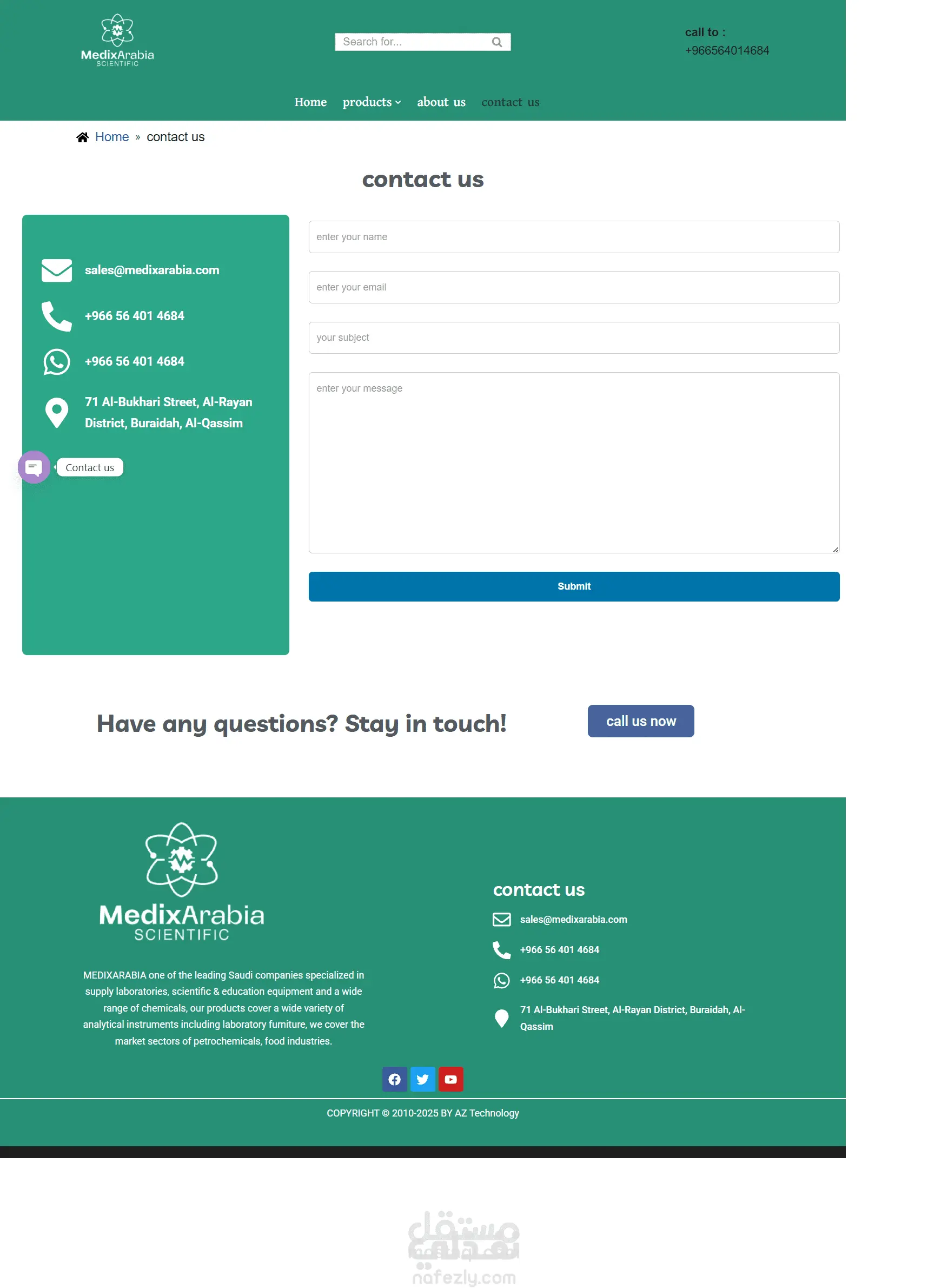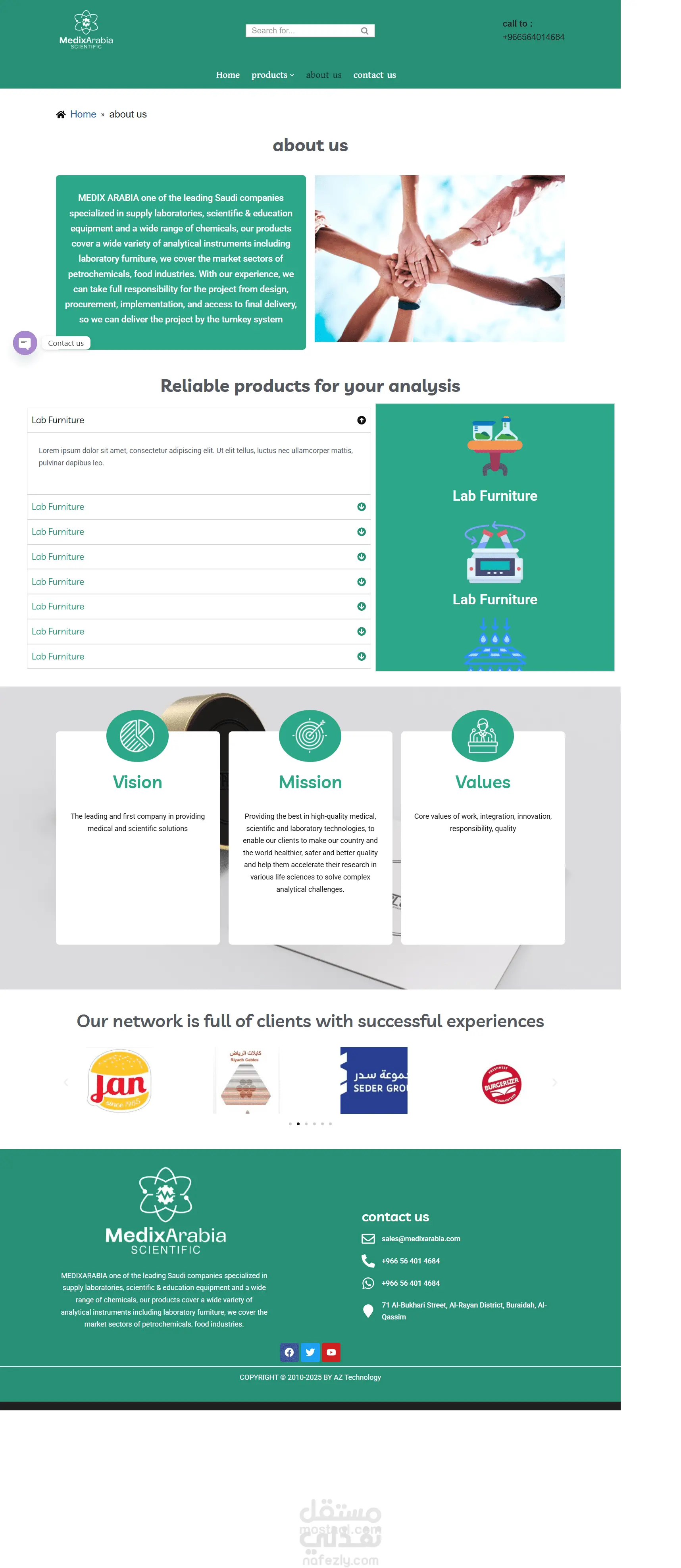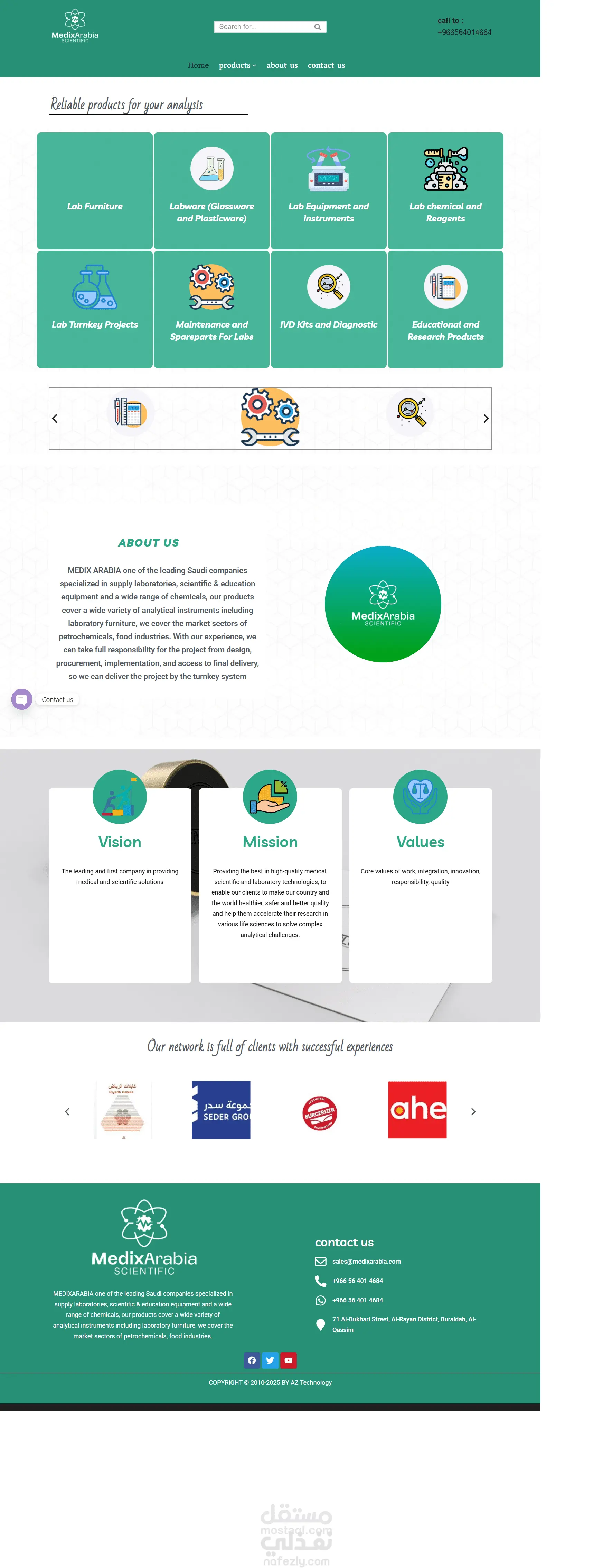 "تم تنفيذ مشروع موقع إلكتروني احترافي لشركة MEDIX ARABIA، إحدى الشركات السعودية الرائدة في توريد المعامل والمعدات العلمية والتعليمية والكيماويات. الموقع صُمم ليعكس هوية الشركة ويعرض خدماتها ومنتجاتها بطريقة منظمة واحترافية، مع إبراز خبرتها في قطاعات البتروكيماويات وصناعات الأغذية. تم تطوير الموقع ليكون متجاوب مع جميع الأجهزة، سريع الأداء، وسهل الإدارة، مع تحسينات SEO لضمان ظهور مميز في نتائج البحث. النتيجة: موقع متكامل يعبر عن احترافية الشركة وجودتها في السوق السعودي."
