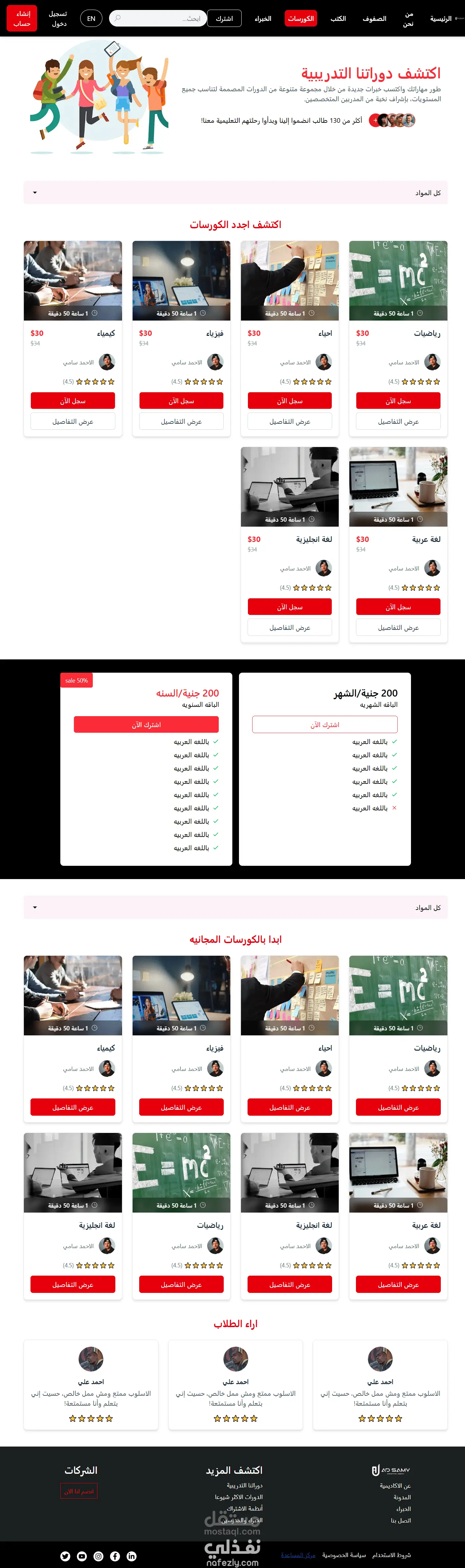 قمت بتطوير منصة تعليمية كبيرة متكاملة توفر نظام كورسات احترافي يحتوي على: محتوى تعليمي متنوع: فيديوهات عالية الجودة، ملفات PDF، ومقالات تعليمية. نظام حماية متقدم للفيديوهات يمنع التحميل أو النسخ غير المصرح به. تنظيم المحتوى بشكل منهجي عبر تقسيم الكورسات إلى وحدات ودروس لتسهيل عملية التعلم. تصميم متجاوب يعمل بسلاسة على الهواتف، التابلت، والحواسيب. 1- إدارة المستخدمين: حساب خاص للطالب للوصول إلى الكورسات والاختبارات والواجبات. لوحة تحكم للمدرس لإدارة الكورسات ومتابعة تقدم الطلاب. حساب لأولياء الأمور لمتابعة نتائج ومستوى الأبناء. 2- نظام الدفع وتفعيل الكورسات: دفع أونلاين (بطاقات – فودافون كاش – فوري). تفعيل الكورسات عبر أكواد خاصة من نقاط البيع. 3- الاختبارات والتفاعل: اختبارات تفاعلية (اختيار من متعدد – صح وخطأ – أسئلة مقالية – توصيل). واجبات إلكترونية مع تصحيح تلقائي. تقارير تفصيلية لأداء الطلاب مع شهادات معتمدة PDF يمكن مشاركتها على وسائل التواصل. 4- التقارير والمتابعة: تقارير إنجاز – تقارير مقارنة – تقارير حضور. متابعة أولياء الأمور لمستوى الأبناء ونتائجهم. نظام تحليل بيانات لحظي لمعدلات النجاح، نسب الحضور، ووقت الدراسة. 5- المحتوى الإضافي: مدونة تعليمية بمقالات، نصائح، تجارب تعليمية، وأفكار تدريس إبداعية. مساهمات من المدرسين والخبراء. 6- الإدارة المالية: نظام مالي متكامل مع تقارير المبيعات والإيرادات والفواتير. حساب العمولات وربط المنصة بالسنتر التعليمي لإدارة الطلاب.