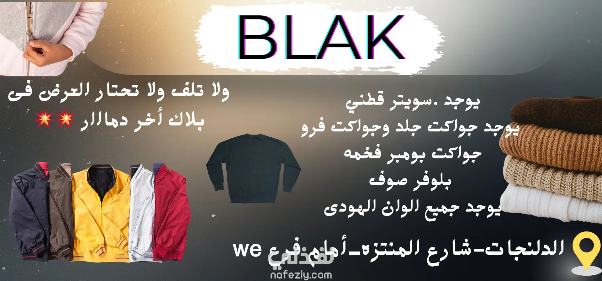 بانر إعلانى لمتجر ملابس شتويه شبابى مصمم بألوان الشتاء الدافئه باللون الرمادي الغامق وتداخلات من الأسود والذهبى والأبيض