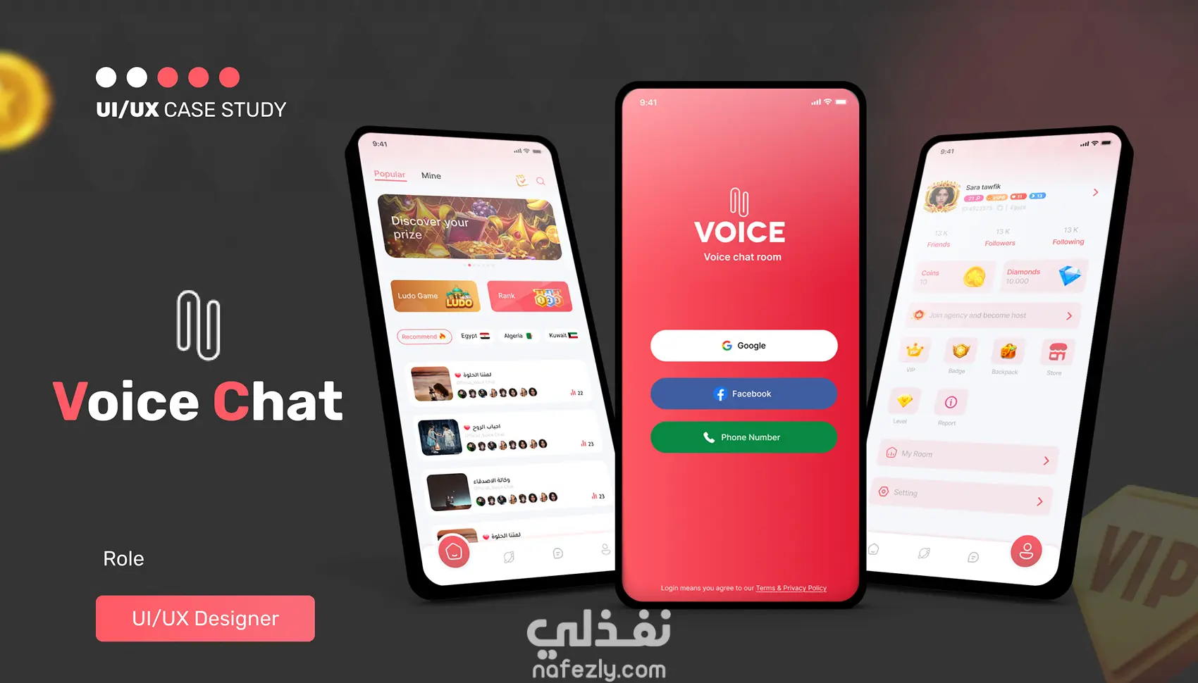 تصميم واجهة تطبيق دردشة صوتية احترافية بتجربة مستخدم تفاعلية