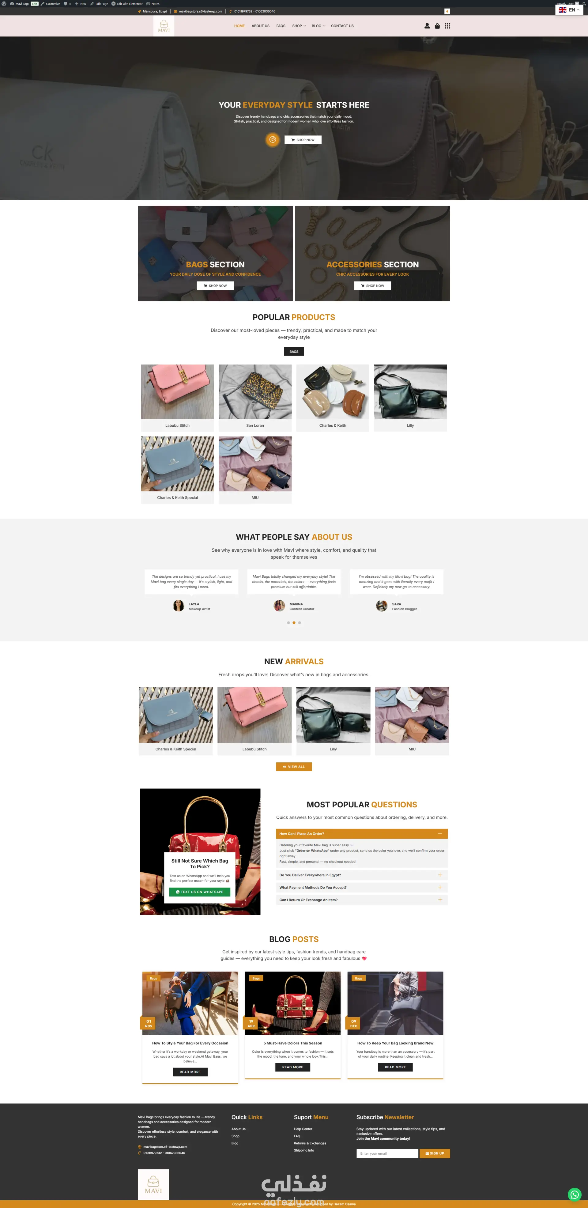 تصميم وتطوير موقع إلكتروني لمتجر الحقائب والاكسسوارات الحريمي Mavi Bags