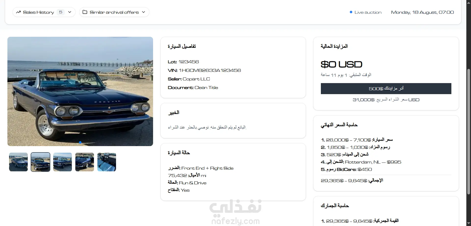 🚗 نبذة عن الصفحة: صفحة هبوط مميزة لعرض السيارات بطريقة عصرية وسهلة الاستخدام، تتيح للزوار تصفح مجموعة من السيارات مع عرض كافة التفاصيل والمواصفات لكل سيارة بشكل واضح وجذاب. توفر الصفحة إمكانية طلب شراء السيارة مباشرة عبر نموذج مخصص يسهل على المستخدمين التواصل وإتمام عملية الطلب بسرعة. تتميز الصفحة بتصميم أنيق ومتجاوب يعمل بسلاسة على جميع الأجهزة، مع تجربة مستخدم مريحة تركز على إبراز جودة السيارات وتحفيز الزوار لاتخاذ قرار الشراء.