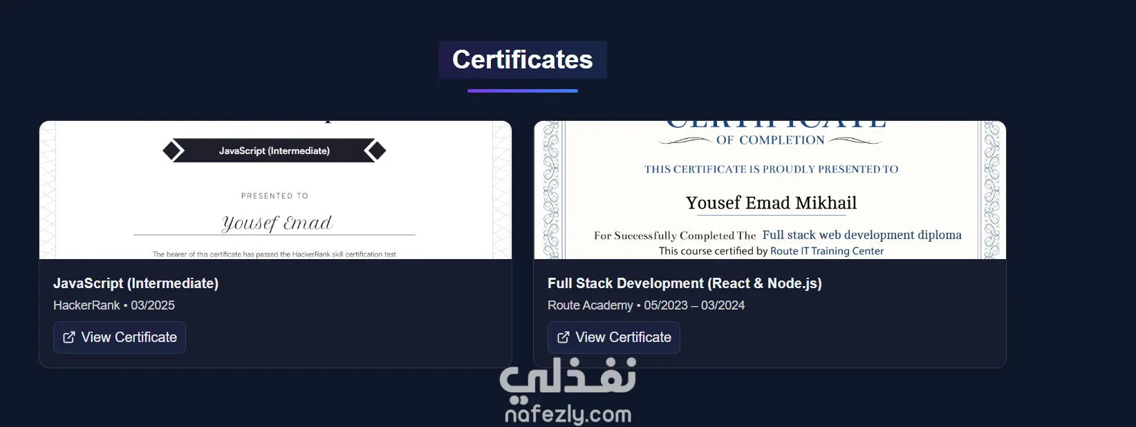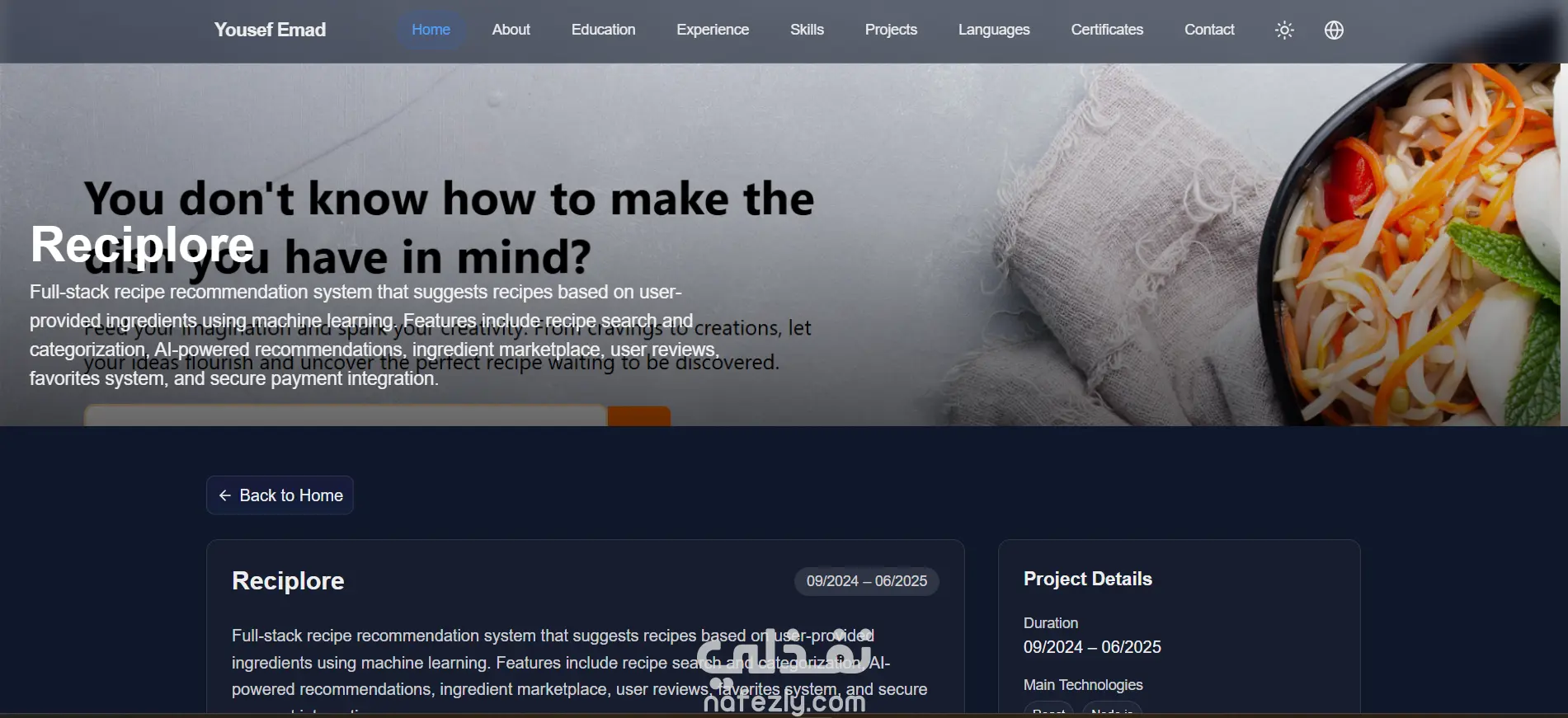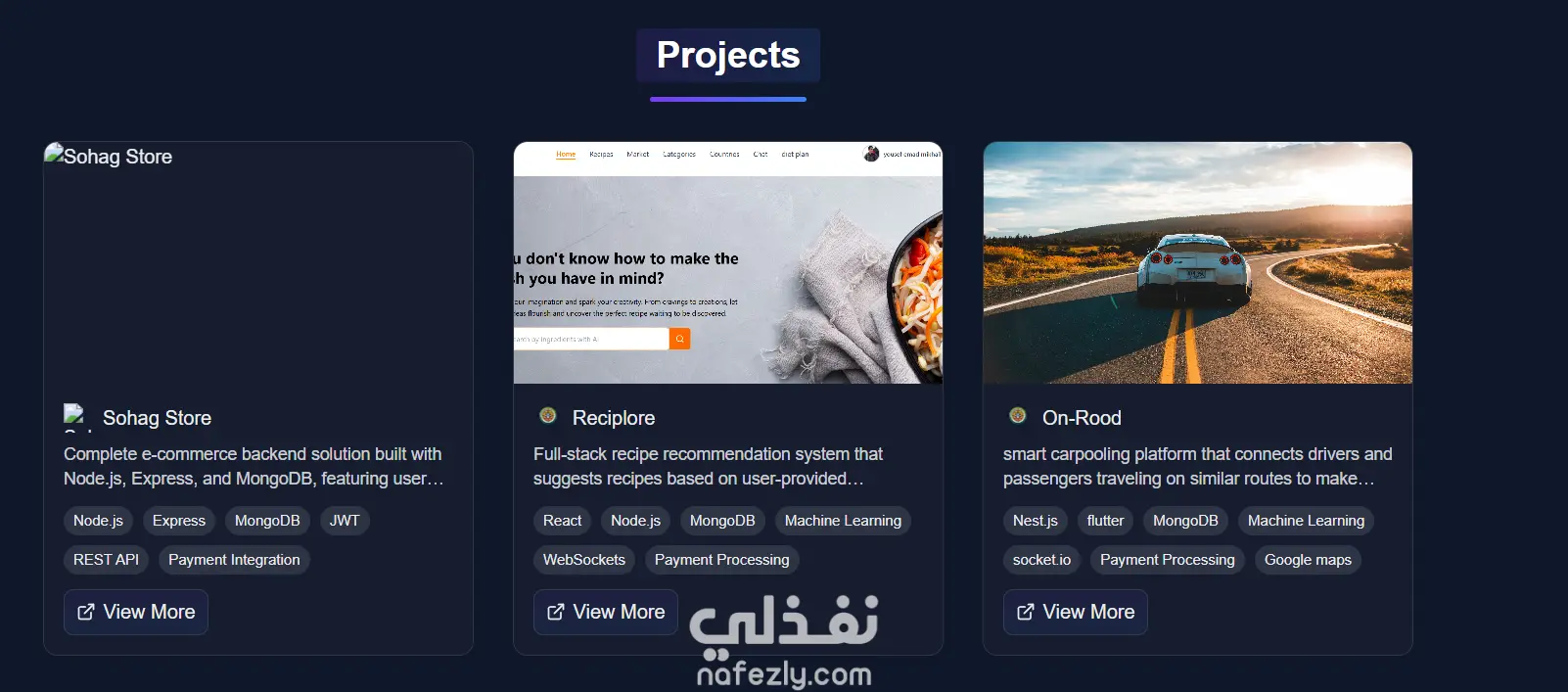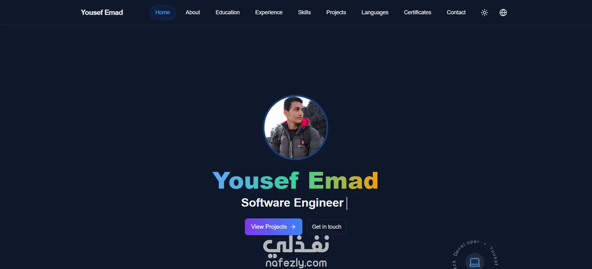 مشروعي الثاني هو موقع شخصي (Web Portfolio) مطوّر باستخدام Next.js و Tailwind CSS، وهو نسخة مطوّرة وأكثر احترافية من موقعي السابق الذي بنيته بـ React.js.