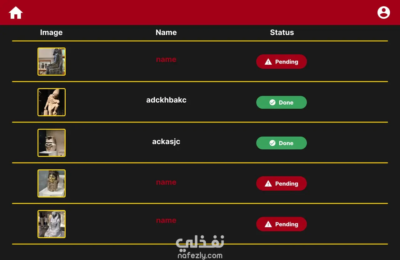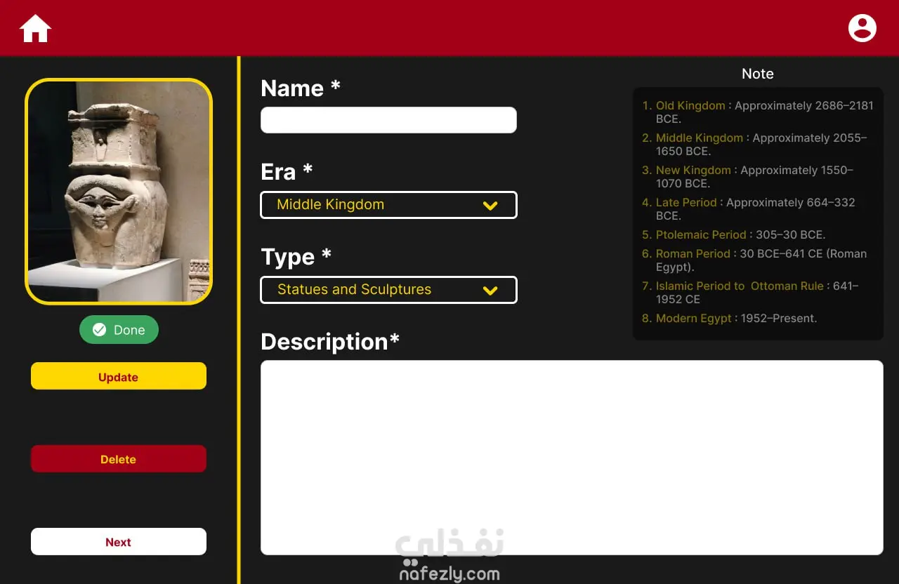 واجهة إدارة القطع الأثرية (Artifact Management Interface) متجاوبة بتصميم عصري