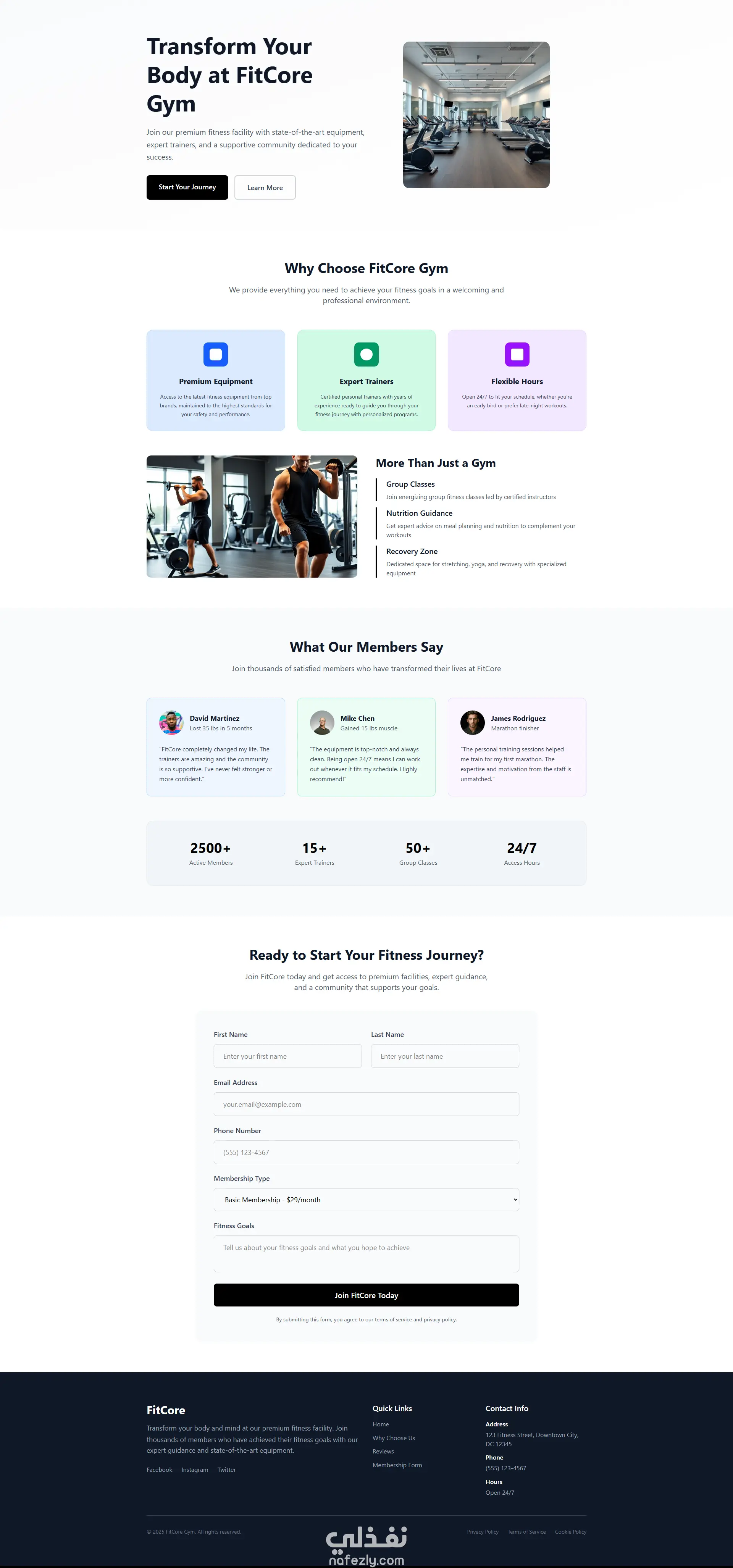 I created a modern, responsive landing page for FitCore Gym, designed to attract new members and showcase the gym’s premium facilities and services. The page focuses on clean design, clear structure, and user engagement — encouraging visitors to take action through an easy-to-use sign-up form.