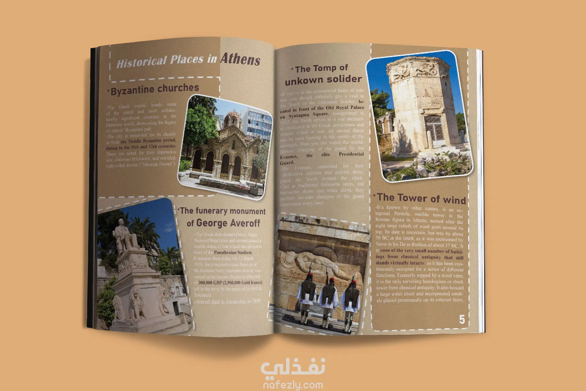 يشمل المشروع: غلاف جذاب يسرق الأنظار، اختيار خطوط مميزة، تخطيط صفحات سلس وجذاب، وتنظيم الصور بطريقة تحكي قصة كل وجهة.