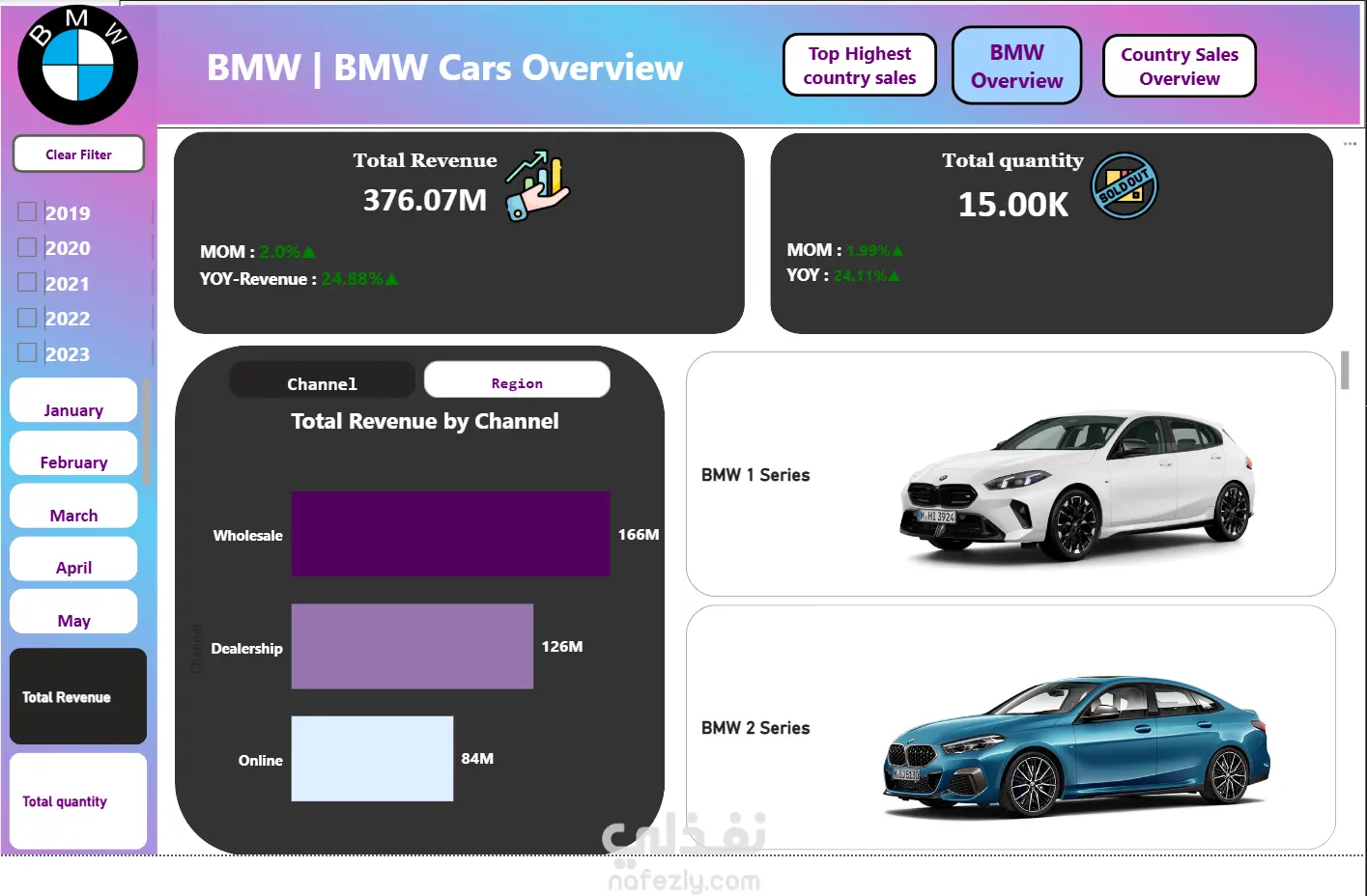★ إجمالي الإيرادات - التغيرات الشهرية والسنوية مع الوقت المختار لكل موديل سيارة